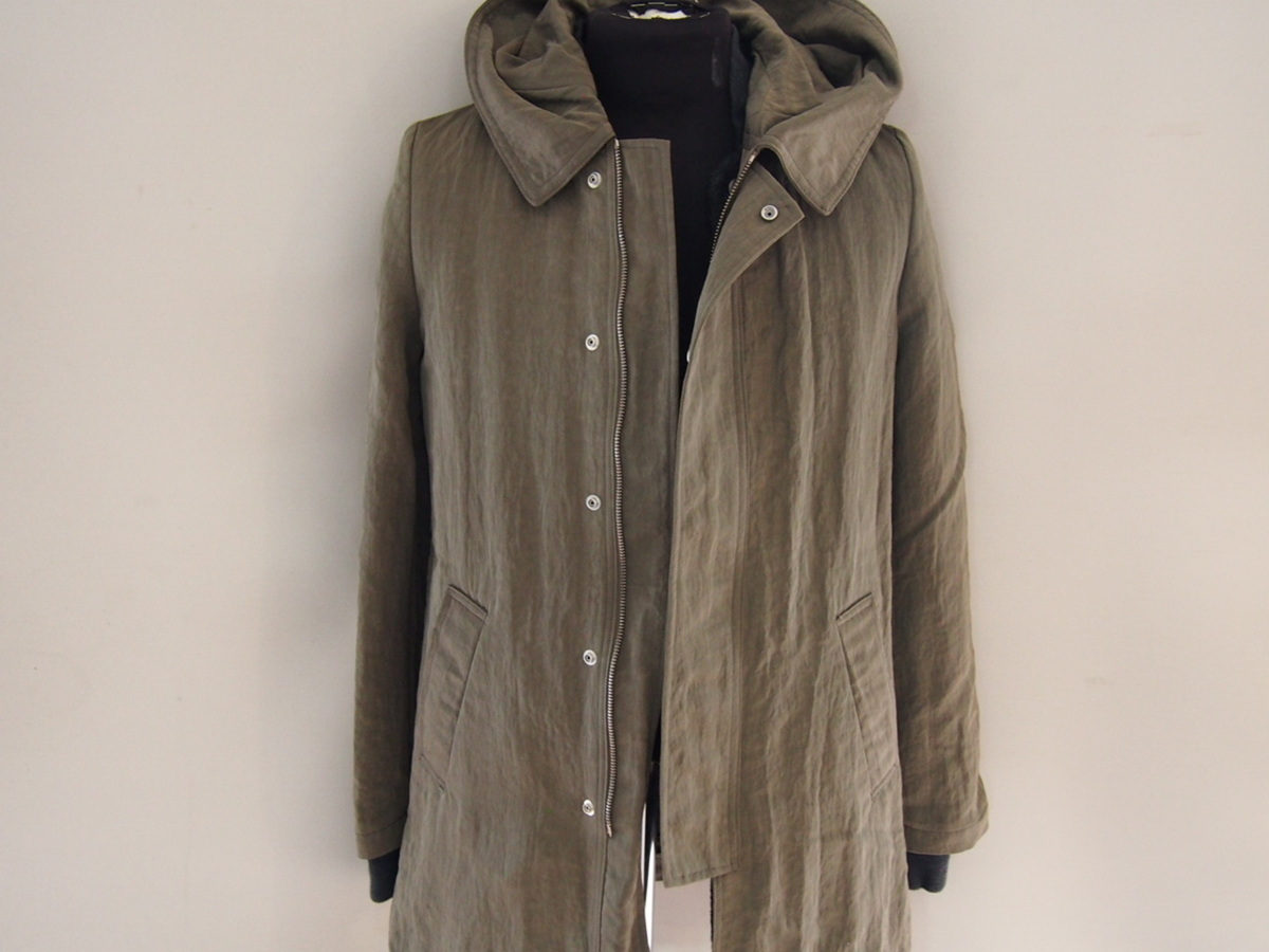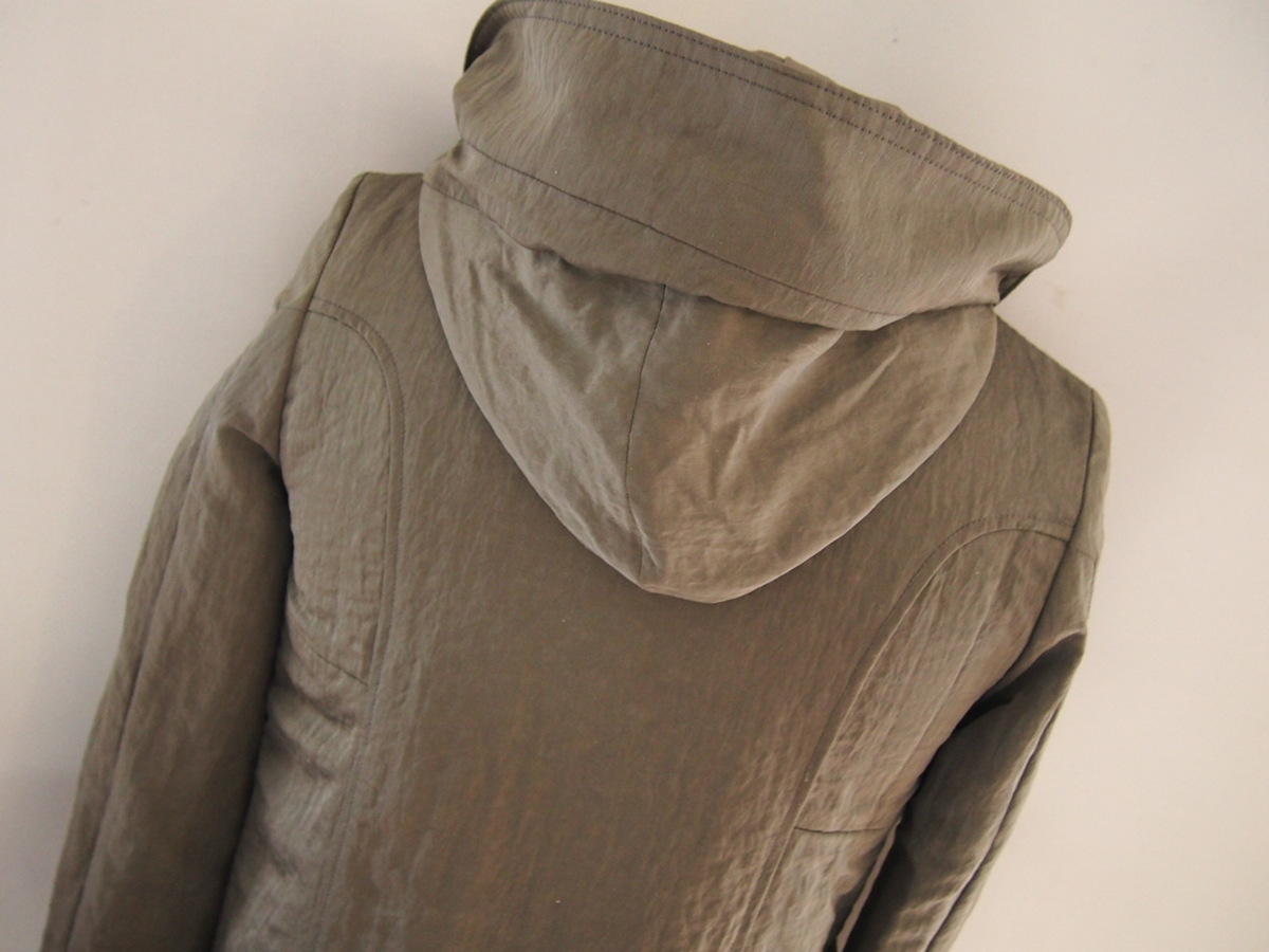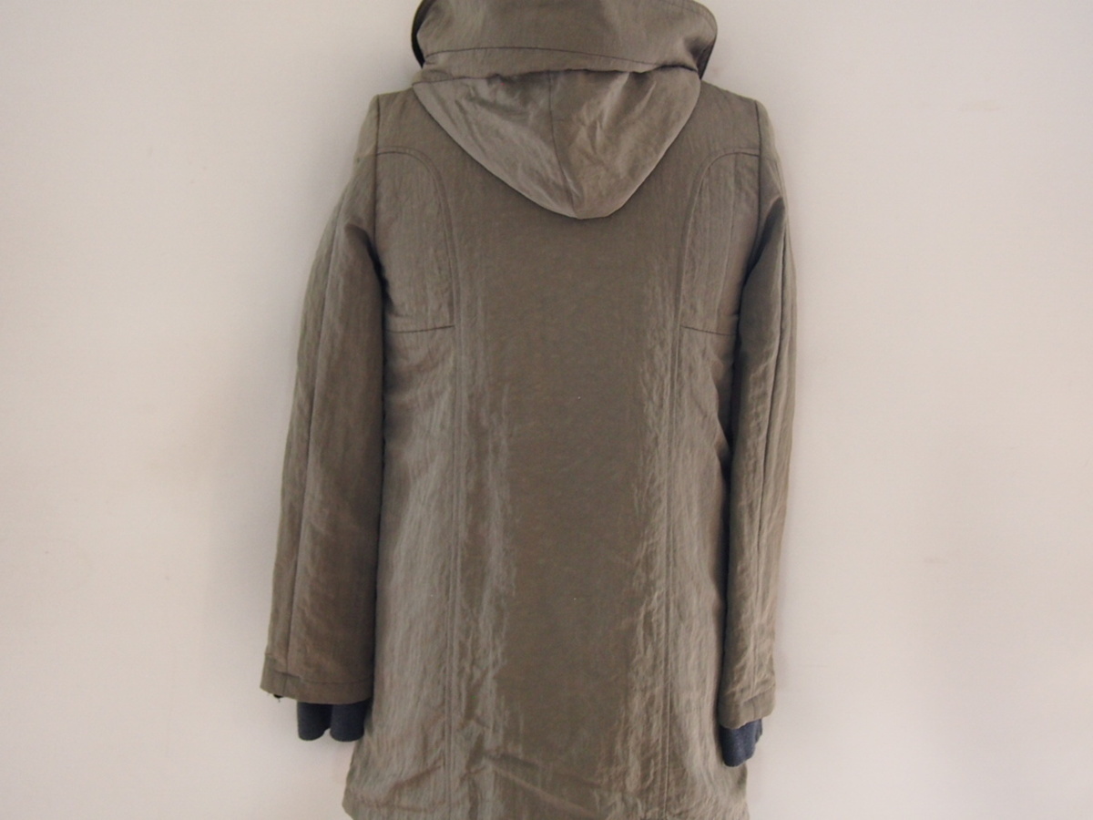 ファドスリーの長袖ミリタリーフーディコート/レディースです。 ボタン留めによる着脱式ライナー付きです。 一体式フード、フライフロント開閉部はスナップボタン&シングルジップアップ仕様、サイドオープンポケット配置、袖口切替リブ地です。 サイズ表記はSサイズです。 平置き採寸肩幅約38cm、身幅(脇下)約43.5cm、袖丈(切替リブ地迄)約64cm、着丈約77.5cm。 素人採寸ですので多少の誤差はご了承ください。 カラーはカーキ系等を基調。 微妙なお色、デザインですので写真をよく参照してください。 素材は本体表地ナイロン100%、ライナー部分毛65%、ナイロン35%、別布部分綿100%、リブ部分アクリル80%、ナイロン15%、毛5%。 中古品ですので細かい汚れや傷など気にされる神経質なかたの入札はご遠慮ください。 ノークレーム、ノーリターンでお願いします。 レディース・メンズ又はユニセックス等の区別に関してランドリータグ等に記載がない場合、弊社の判断でカテゴリー化しています。 尚メンズ・レディースの判断は弊社では出来かねますので、サイズに関しましてはメーカーサイズの他に商品を実際に測った平置き採寸を必ずご確認ください。(各メーカーによりサイズの採寸が異なります。) |