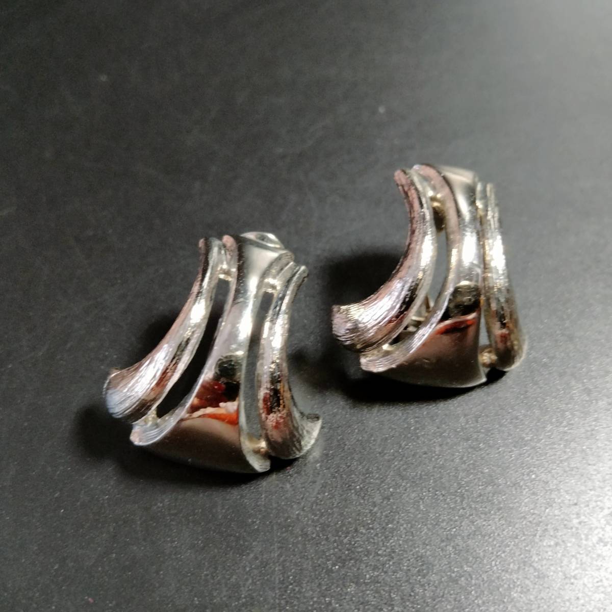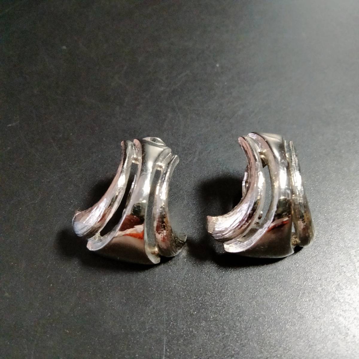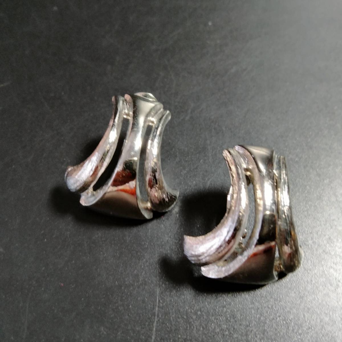 ビンテージ ピアス カーブ オープン イヤリング シルバートーン アールデコ 昭和レトロ コスチューム ジュエリー SFAA①34