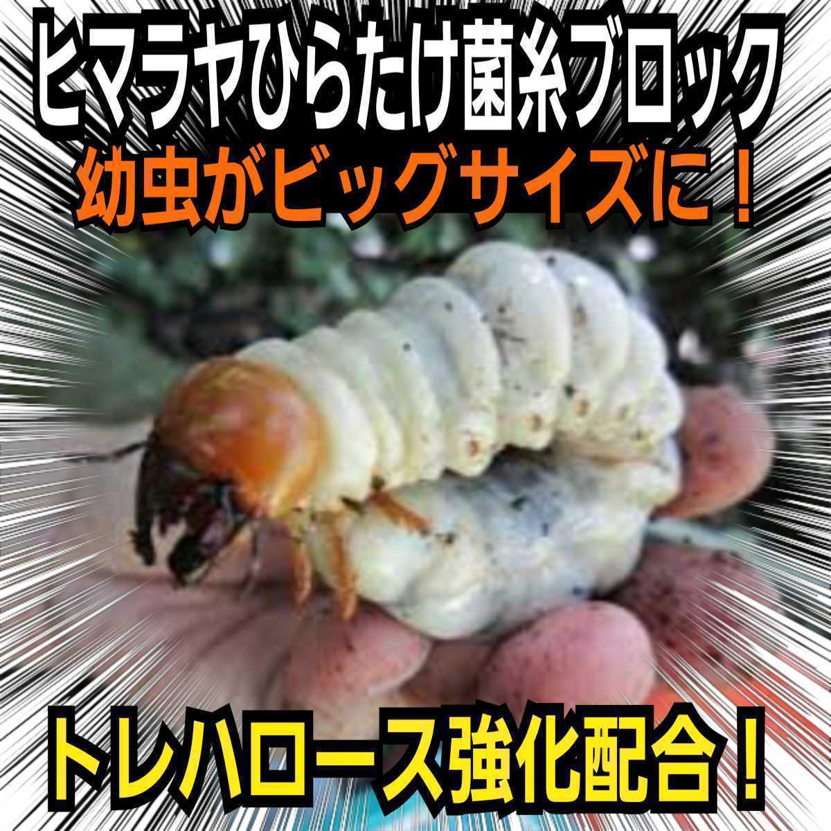 ヒマラヤひらたけはクワガタの飼育に使われるキノコの中では最も高価で入手困難です。 また、菌が強いことからカビが生えにくく、さまざまな種類のクワガタに適合します。 そうした優れた特性をもつヒマラヤひらたけの中から、さらに菌株を厳選し、培地のオガコと栄養添加剤にもこだわり、菌のもつパワーが最大限に引き出されてます。 ![]() 幼虫の成長促進、大型個体の作出に有効なトレハロースを添加しています。 免疫力を高めるキトサン、高活性グルテン、アルギニン、ローヤルゼリー、グルコース、カルシウム、ミネラル、アミノ酸・酵素・酵母菌も絶妙なバランスで配合した究極の菌糸ブロックで大型が狙えます。 ![]() 菌糸ブロックは、キノコの栽培技術を応用した「クワガタ幼虫飼育用のエサ」です。使われるキノコ菌の種類はたくさんあります。 そのなかでもヒマラヤひらたけ菌はクワガタが最も好み大型サイズが羽化します。 クワガタの菌糸飼育のメリットとして、発酵マット飼育よりも大きいサイズで羽化しやすいことがあります。