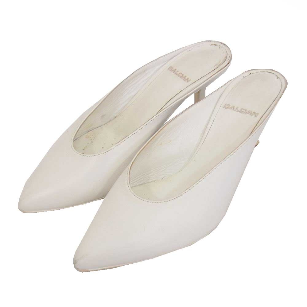商品名 | バルダン BALDAN 1007 ポインテッドトゥ レザー ミュール ヒール パンプス ホワイト系 36【中古】 |