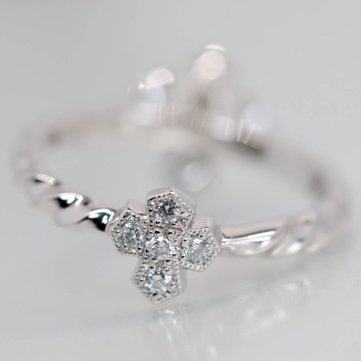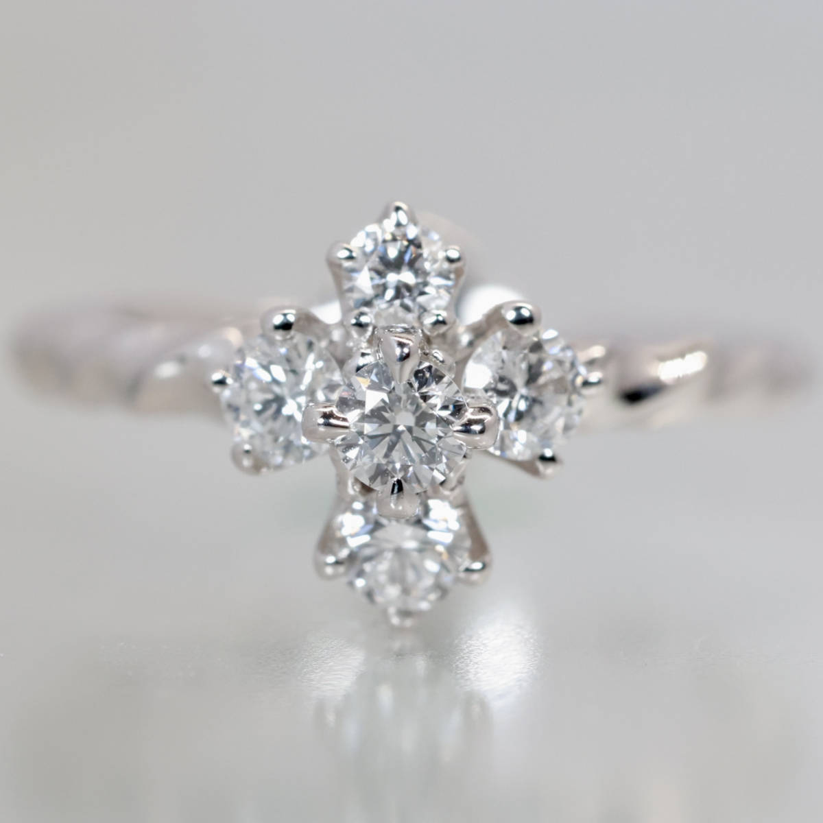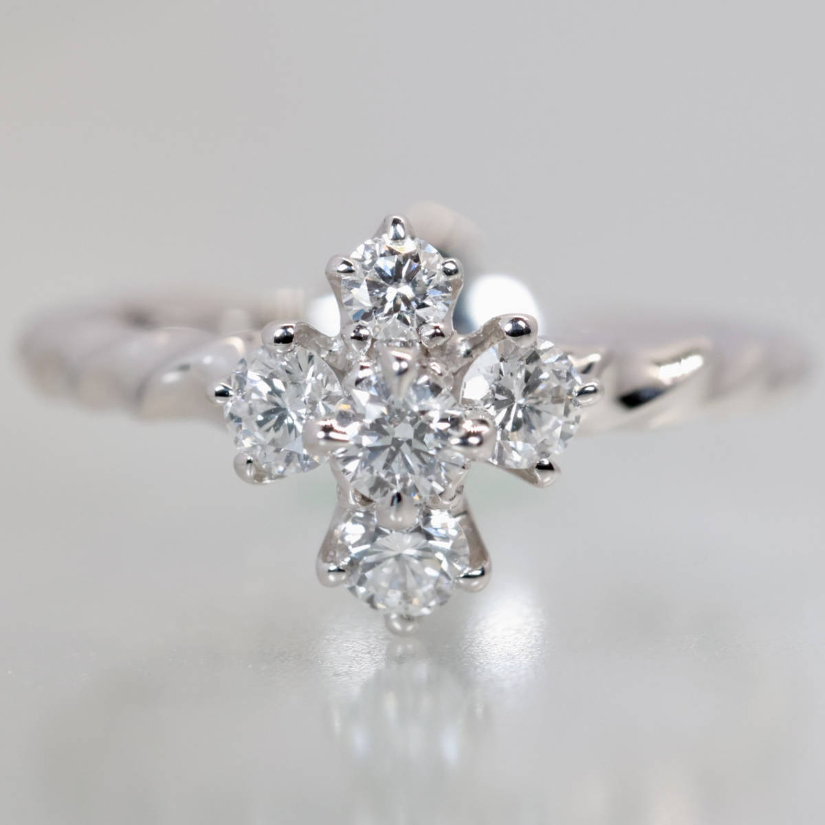 メーカー外修理 Pt900 AbHeri クロス ダイヤモンド ピンキーリング 5号 アベリ
