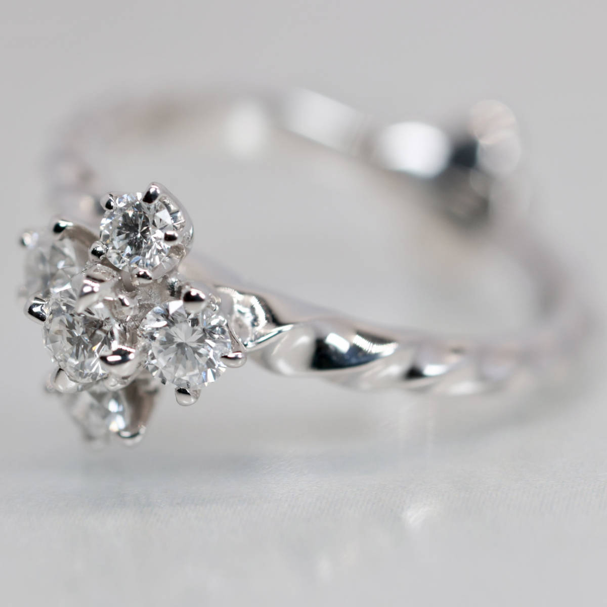 このブランドの製品の中では1粒の大きさが大きめのメレーダイヤモンド、美しいセッティングで上質な輝きをお楽しみ頂けます。