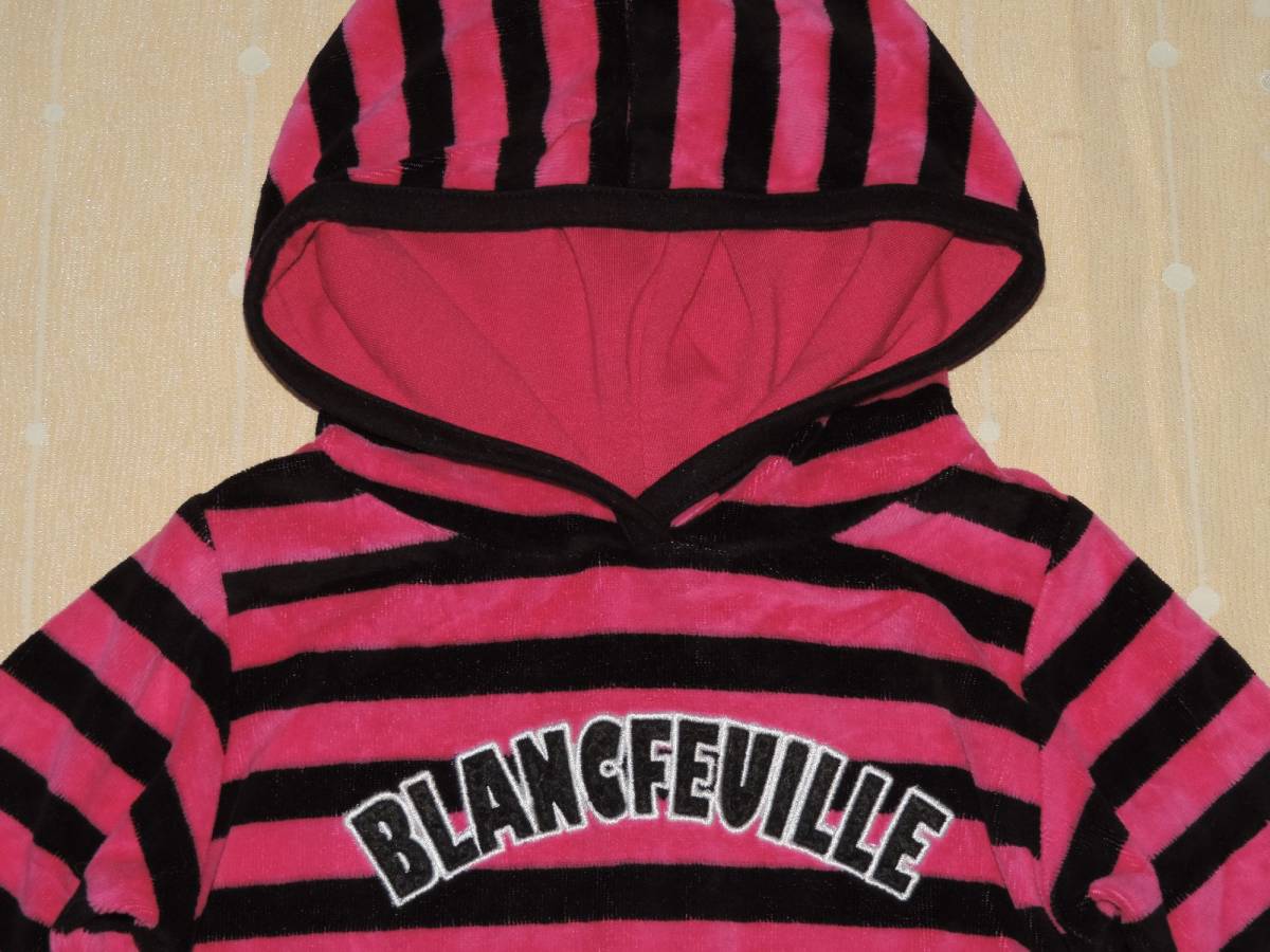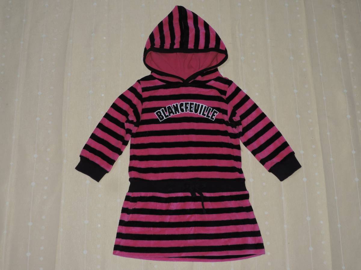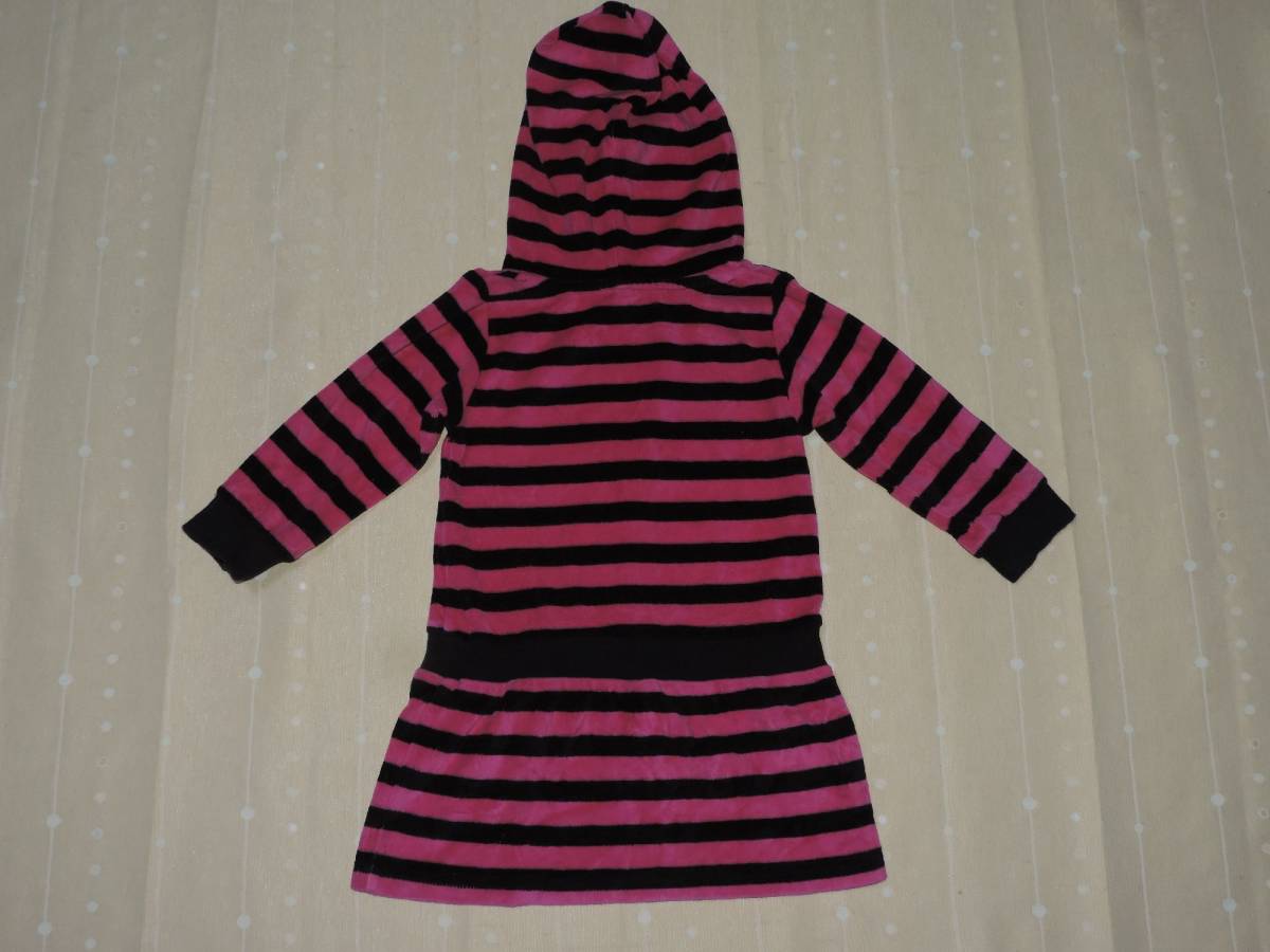 ♪英文字刺しゅう黒×ピンクボーダーフード付きベロア素材長袖ワンピース☆90センチ☆