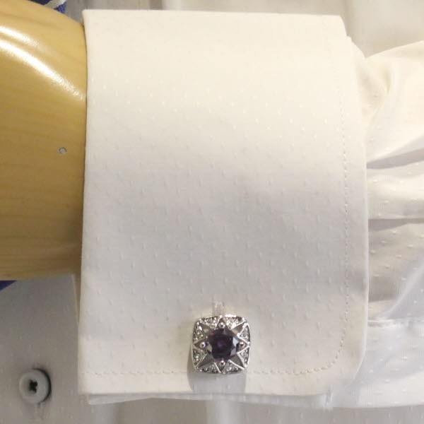 立体的なブリリアントカットのパープルストーンが、優雅に袖元を演出してくれますよ♪
