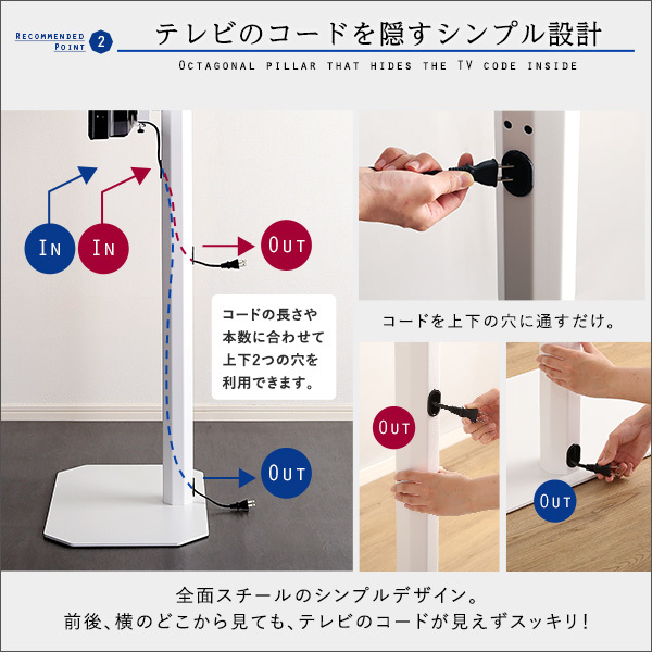 美しいフォルムの八角壁寄せテレビスタンド ハイタイプ  OCTA -オクタ- ブラック
