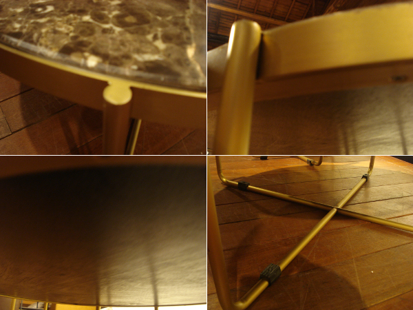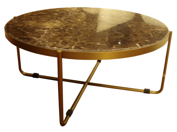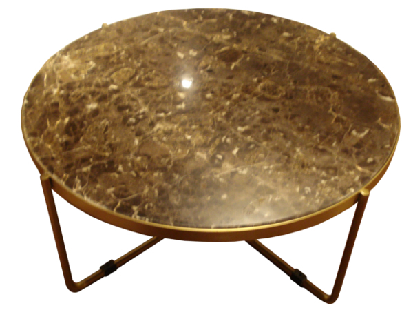 濃色系の大理石と金属のフレームを組み合わせた、マニッシュなコーヒーテーブル。無機質な雰囲気は、ビンテージ系・インダストリアル系のインテリアにもマッチ。