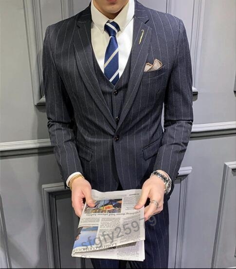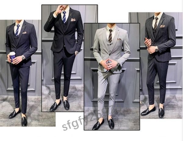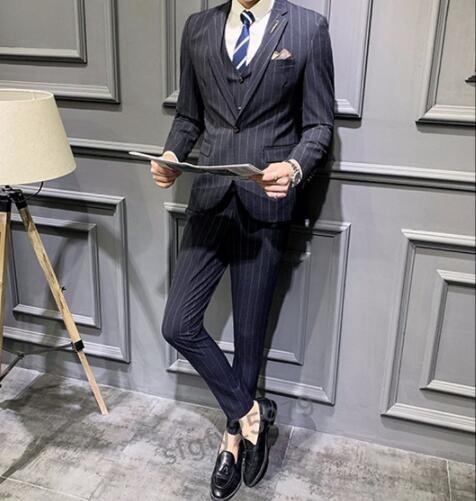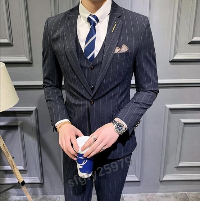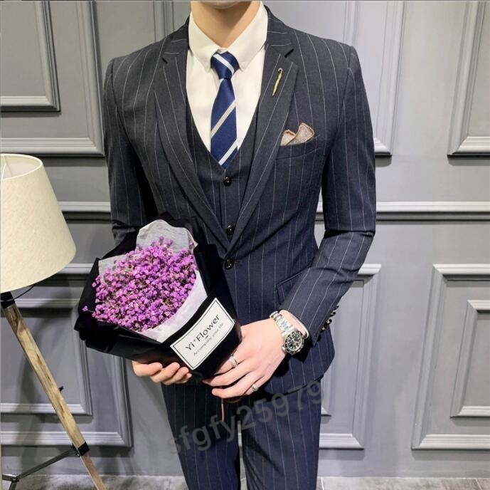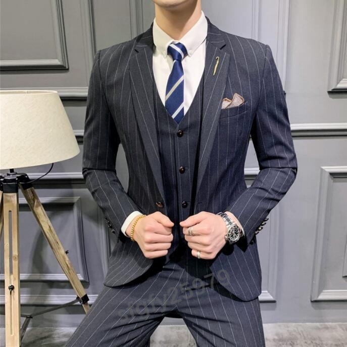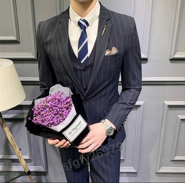 J431☆新品【色とサイズが選べる】XLサイズ メンズビジネススーツ スリーピーススーツ 3点セット 紳士服 ストライプ柄 M~5XL 4色 紺