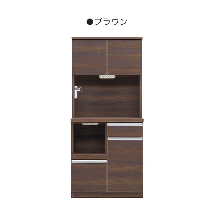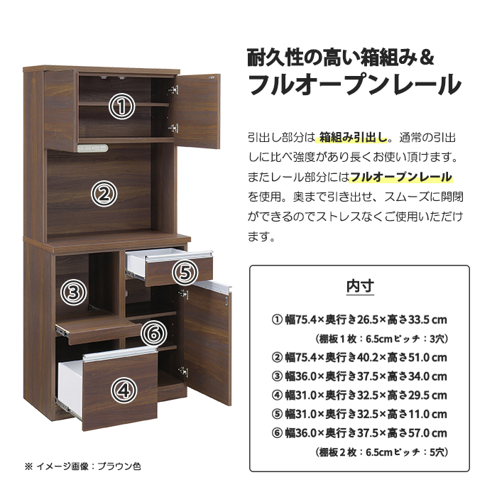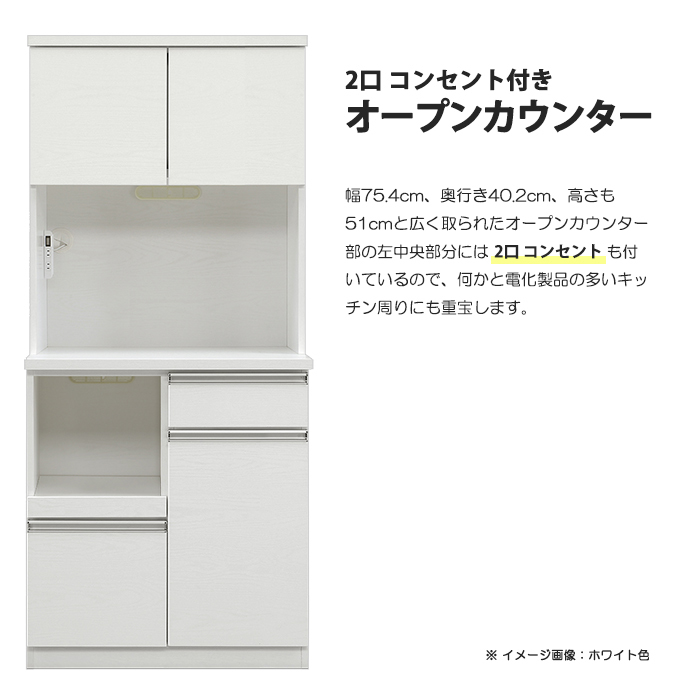 幅80cm ダイニングボード 食器棚 キッチンボード キッチンラック Wコンセント 2口コンセント 箱組み ブラウン