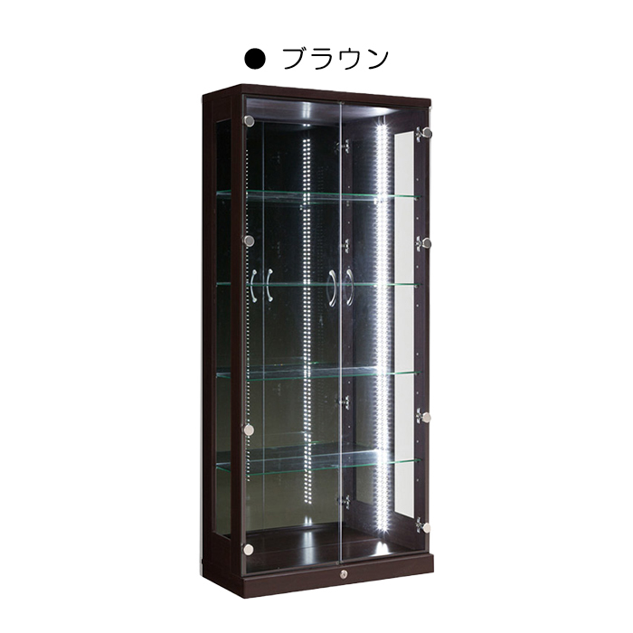 コレクションボード 完成品 幅70cm LEDライト ショーケース コレクションケース リビング収納 フィギュア ブラウン