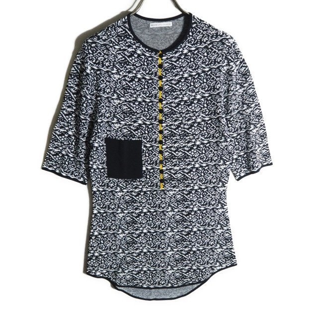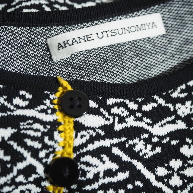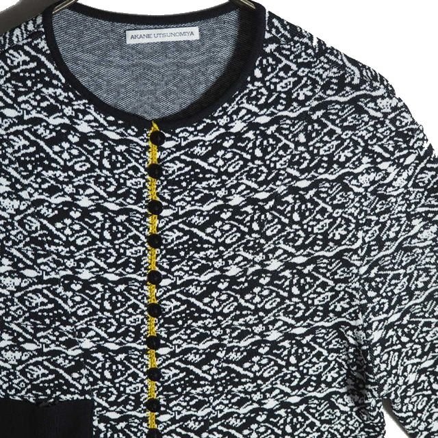 K7484f60 ▼AKANE UTSUNOMIYA アカネウツノミヤ▼ ハーフスリーブ プルオーバーニット 黒白黄 / リゾートコレクション 春夏