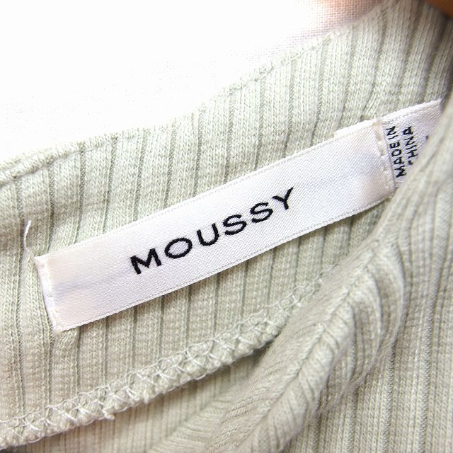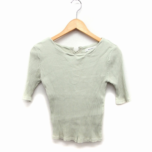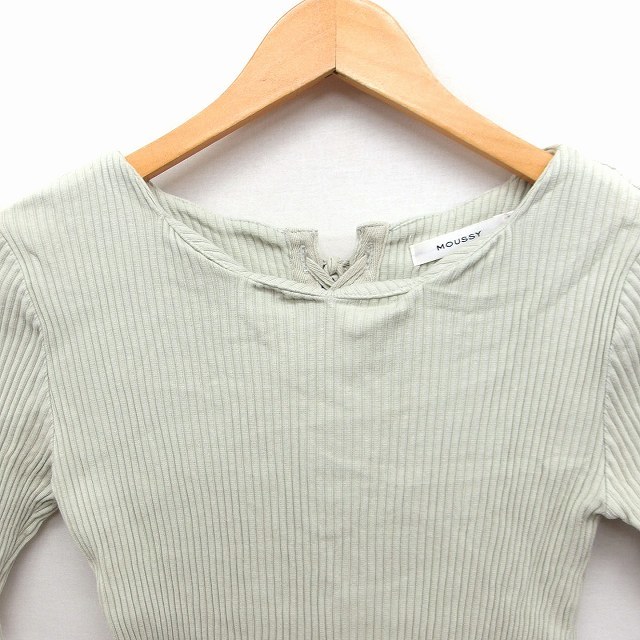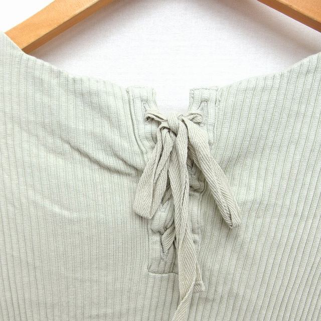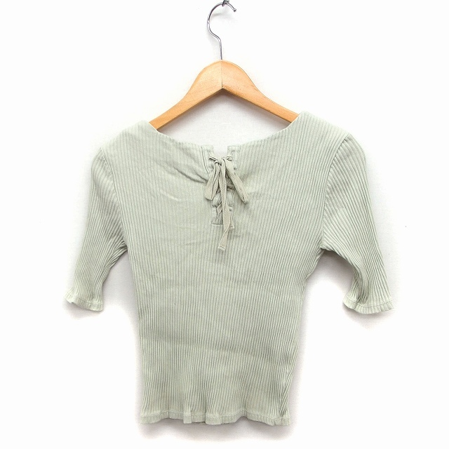 マウジー moussy リブ ニット カットソー 五分袖 ラウンドネック レースアップ 無地 綿 F ライトグリーン 薄緑 /FT11 レディース