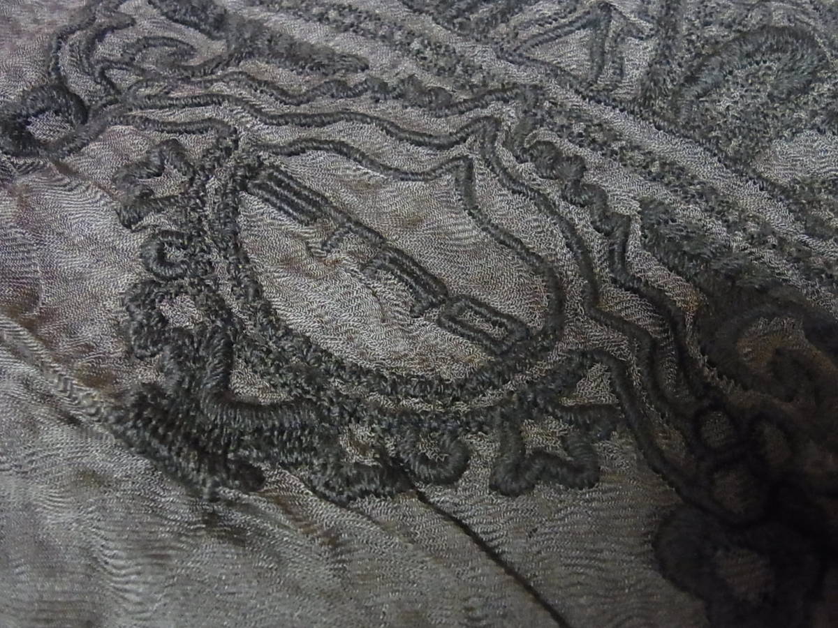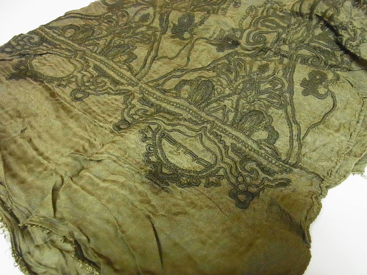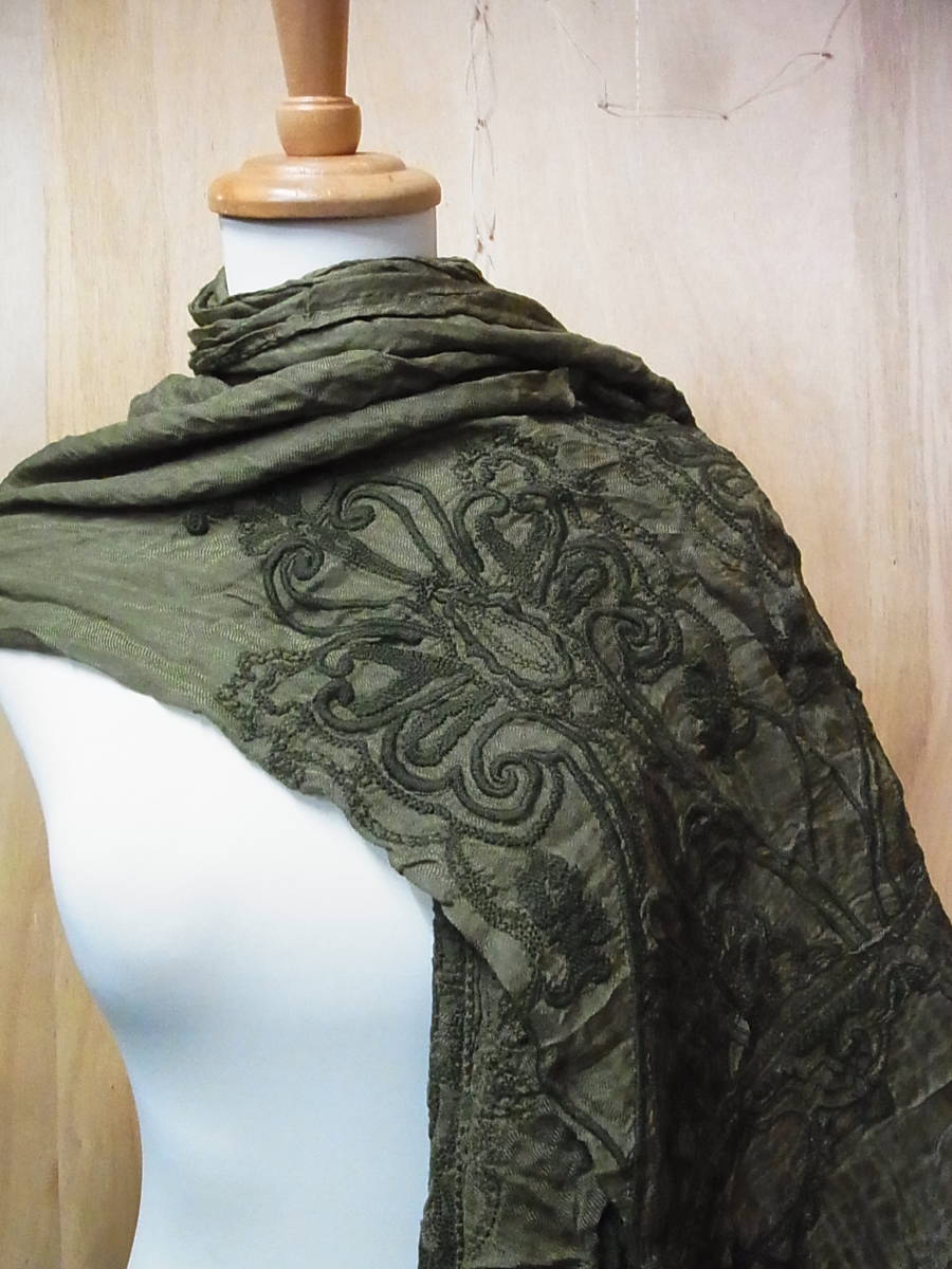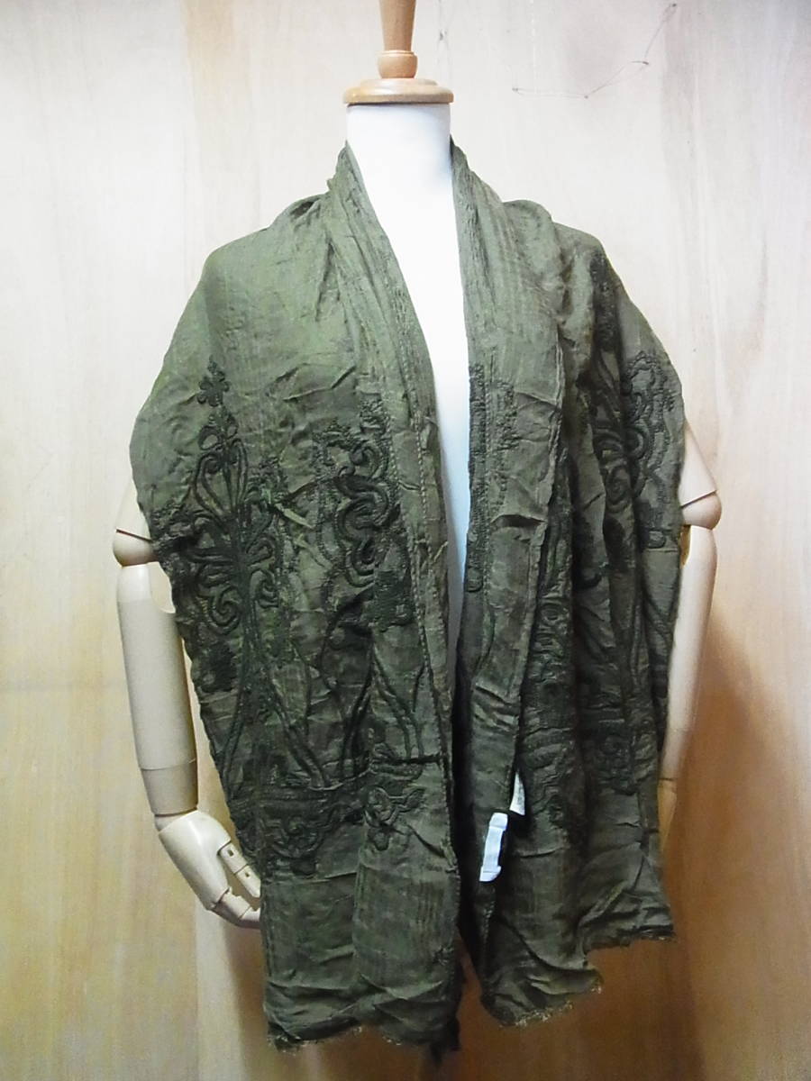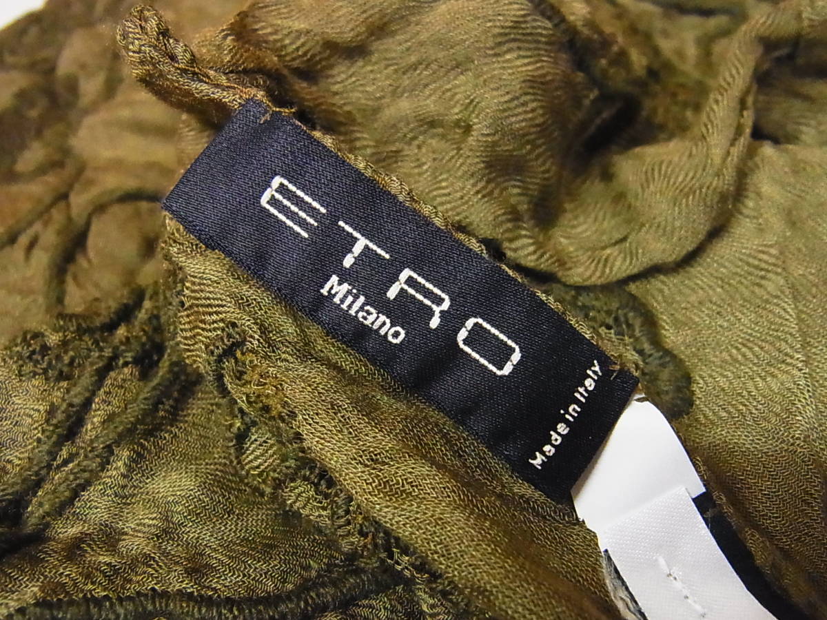 綺麗 イタリア製 ETRO エトロ 大判 刺繍デザイン レーヨン ストール ショール カーキ 小物 | ||
