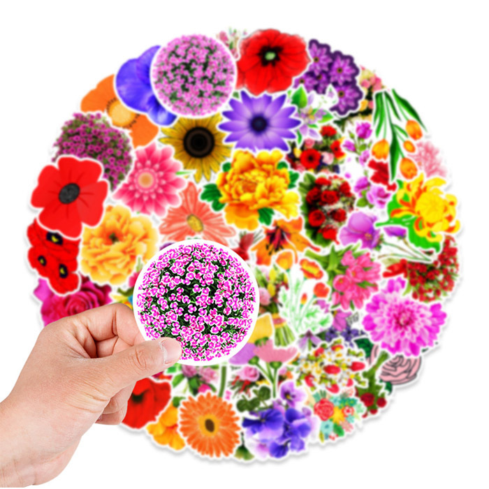 50枚 ステッカー 花 フラワー 防水 耐水 シール 詰め合わせ 0980