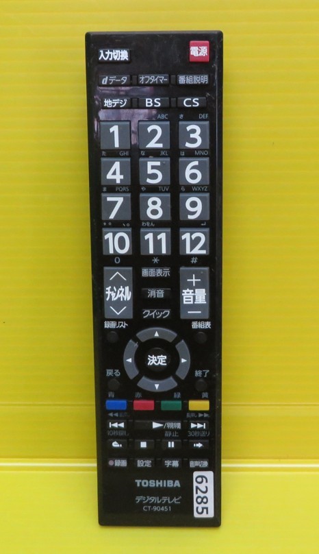 即発送 TV-6285■TOSHIBA 東芝 テレビリモコン CT-90451 ■ 動作品 保証付