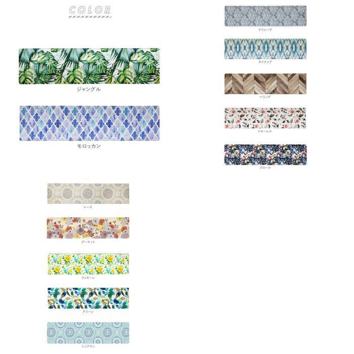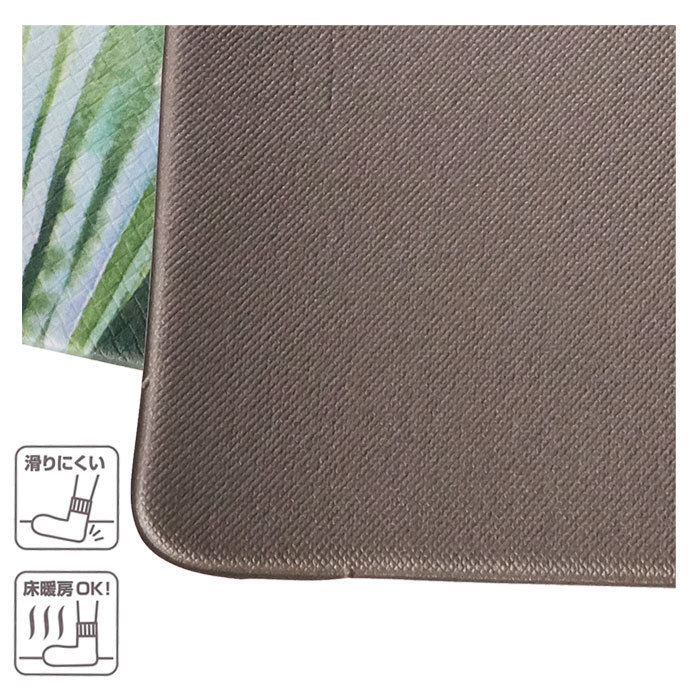 | 注意点 | ※素材特有のにおいがあります。気になる場合は、風通しの良い場所で1~2日、陰干ししてください。 ※マットは床のお掃除に使う洗剤、ワックス、水等をよく拭き取り、乾燥させてからご使用ください。 ※長期間敷いたままでご使用されますと、床材が変色したり密着等することがあります。(特に新築の塩ビ床やワックス掛け後の床)週に2回程度は床面を拭いたり、取り外す等してご使用ください。 ※マットに飛び乗ったり、床面が濡れていると滑る場合がありますのでご注意ください。 ※マットに水・油類をこぼした場合は滑りやすくなりますので、ただちに拭き取ってください。 ※高温の物をマットの上に置かないでください。 ※本品はキッチンマットです。本来の目的以外のご使用はお避け下さい。 ※カメラやモニターの性質により、画像と実物の色の違いがある場合がございますのでご理解願います。 |
