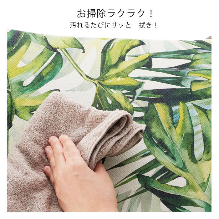 | 商品説明 | ・ナチュラルなジャングル柄や、モロッカン等のパターン柄がスタイリッシュなキッチンマット。キッチンのインテリアや床材に合わせて選べる豊富なカラーバリエーション。 ・弾力感が足に心地よい、もちもちクッション素材!程よい厚みとクッション性で、ソフトな踏み心地。 ・水に強い塩ビ素材なので、水しぶきや油汚れもサッとひと拭きで簡単キレイ!掃除機でゴミも簡単に取れるので、お掃除が楽になり、キッチンをいつも清潔に保ちやすい。 ・脱!めんどくさいお洗濯。お洗濯の必要がないので、貴重な家事の時間を節約できる♪ ・高い抗菌・防臭効果で、雑菌の繁殖や臭いを抑制。また、食べこぼしや水気の多いキッチンでも、高い防カビ効果で、カビの発生・繁殖を抑える効果も! ・燃えにくい防炎性の高い素材を採用。万が一マットに着火した際にも燃え広がることがなく、火を使うキッチンでも安心して使用できる。 |