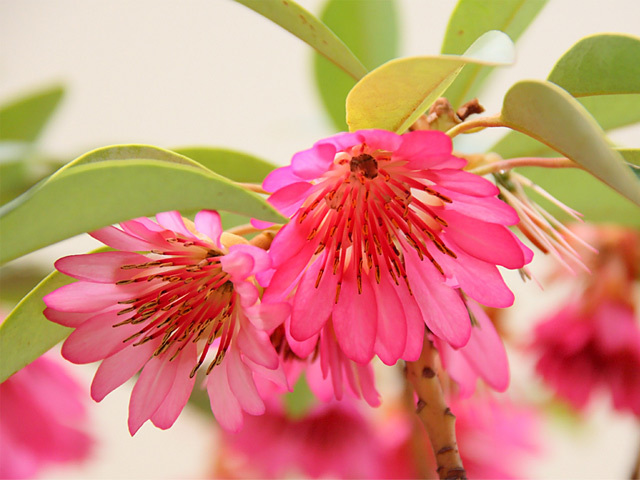 ロドレイアは5m程度までなる常緑低木です。春にシャクナゲに似た赤い花が咲きます。葉は光沢がある皮質です。立ち性の性質で非常に剛健な品種です。韓国では正月に花を飾る習慣があります。温暖な場所を好みます。