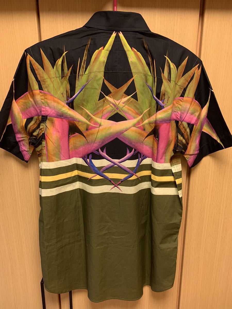 正規 12AW Givenchy ジバンシィ Riccardo Tisci リカルド ティッシ 極楽鳥花 ストレリチア 半袖 シャツ 黒緑 S