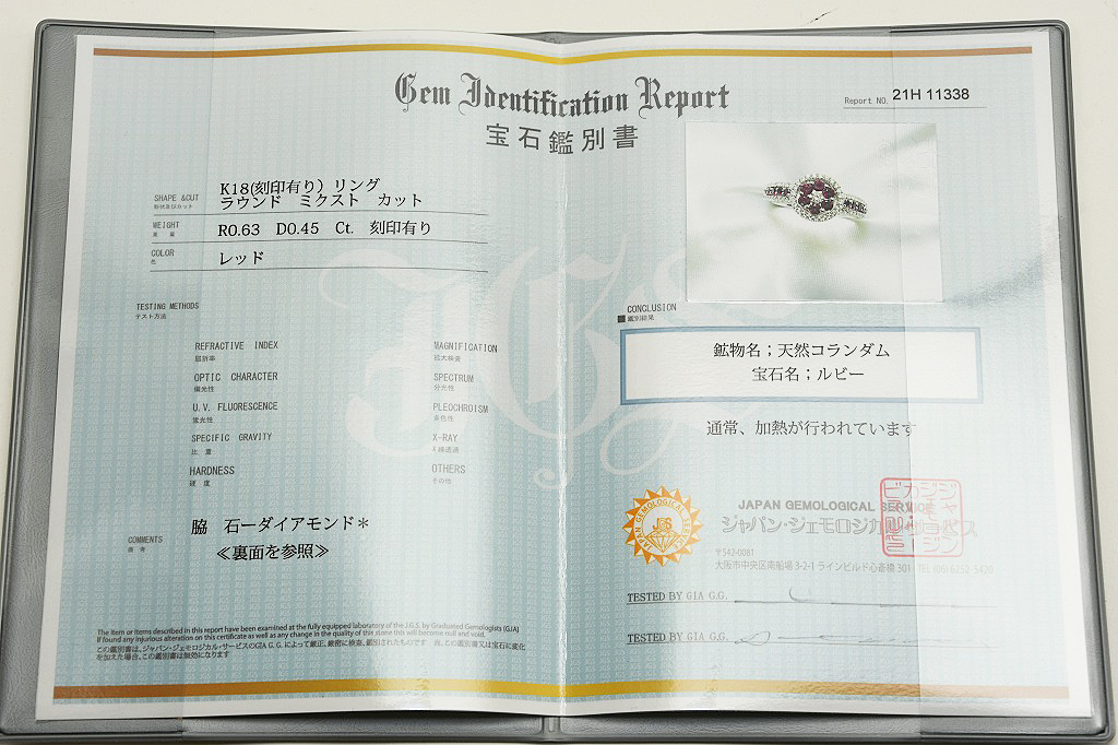 ■鑑定・鑑別:鑑別書(ジャパン・ジェモロジカル・サービス)