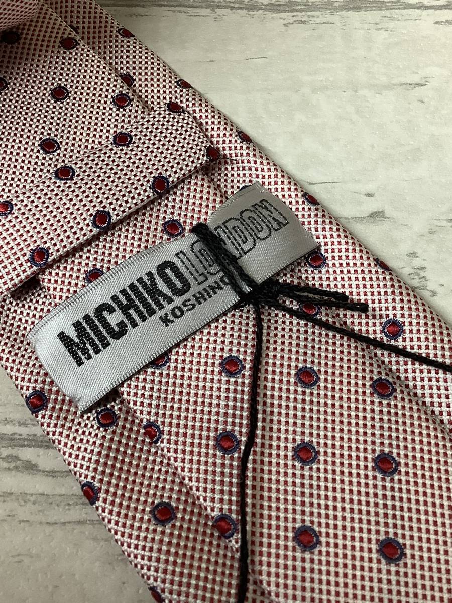 新品未使用★ミチコロンドン★日本製若向ネクタイ ★かわいいピンク生地★ドット小柄 シルク100%のお買い得サービス