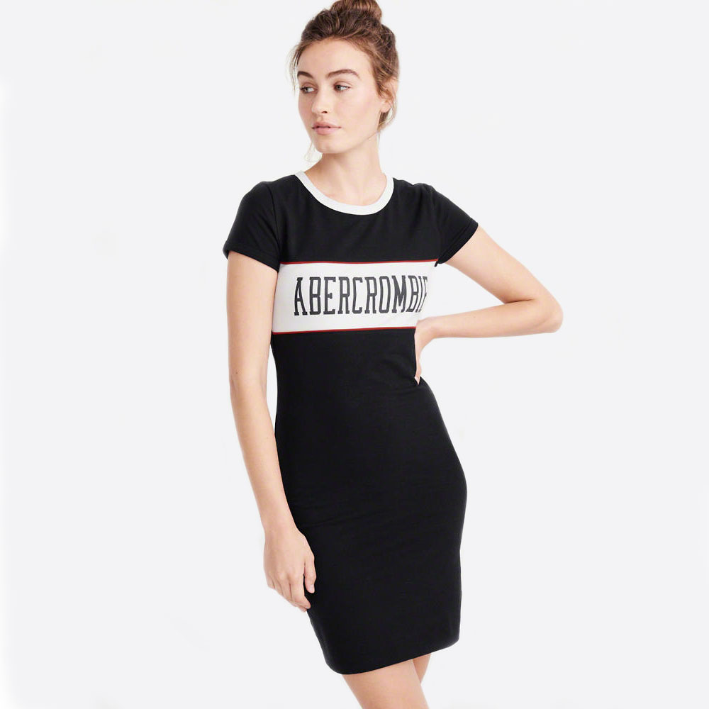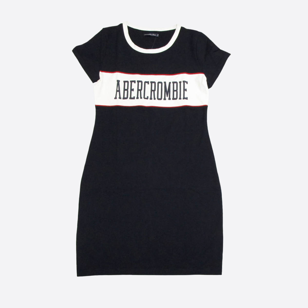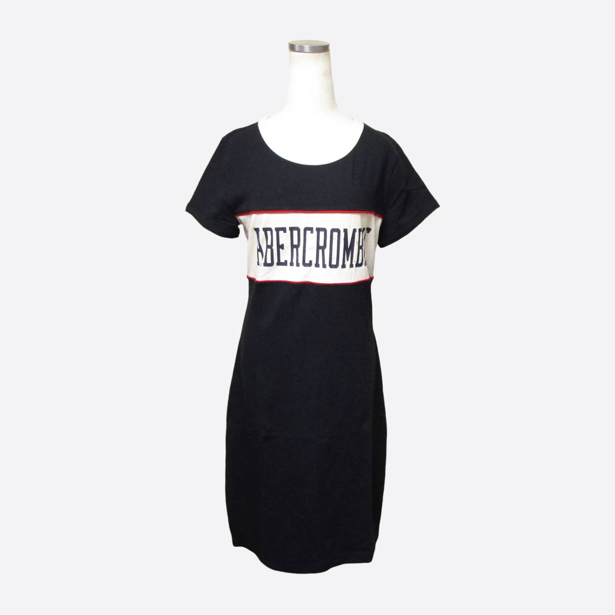 | ★Abercrombie & Fitch/アバクロ★ロゴプリント半袖ワンピース (Black/M) | |||