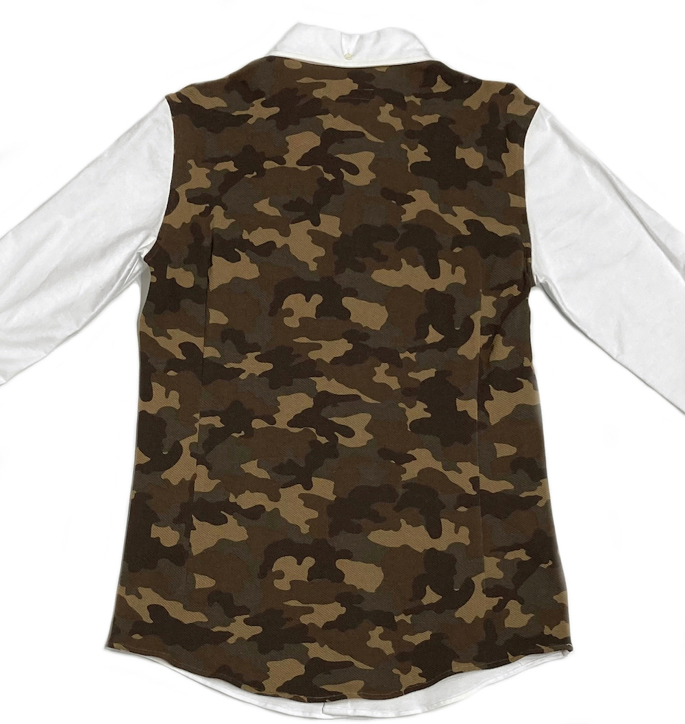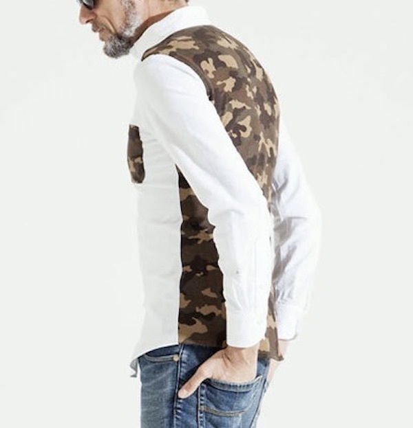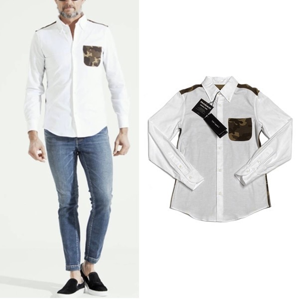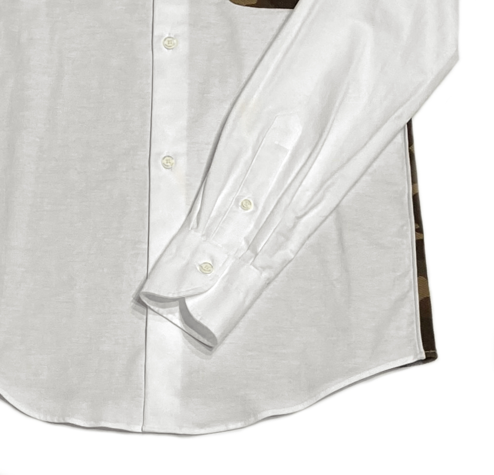 バックパネルと胸ポケットに異素材を組み合わせることでよりファッション性を高めたバイカラーB.Dシャツ。