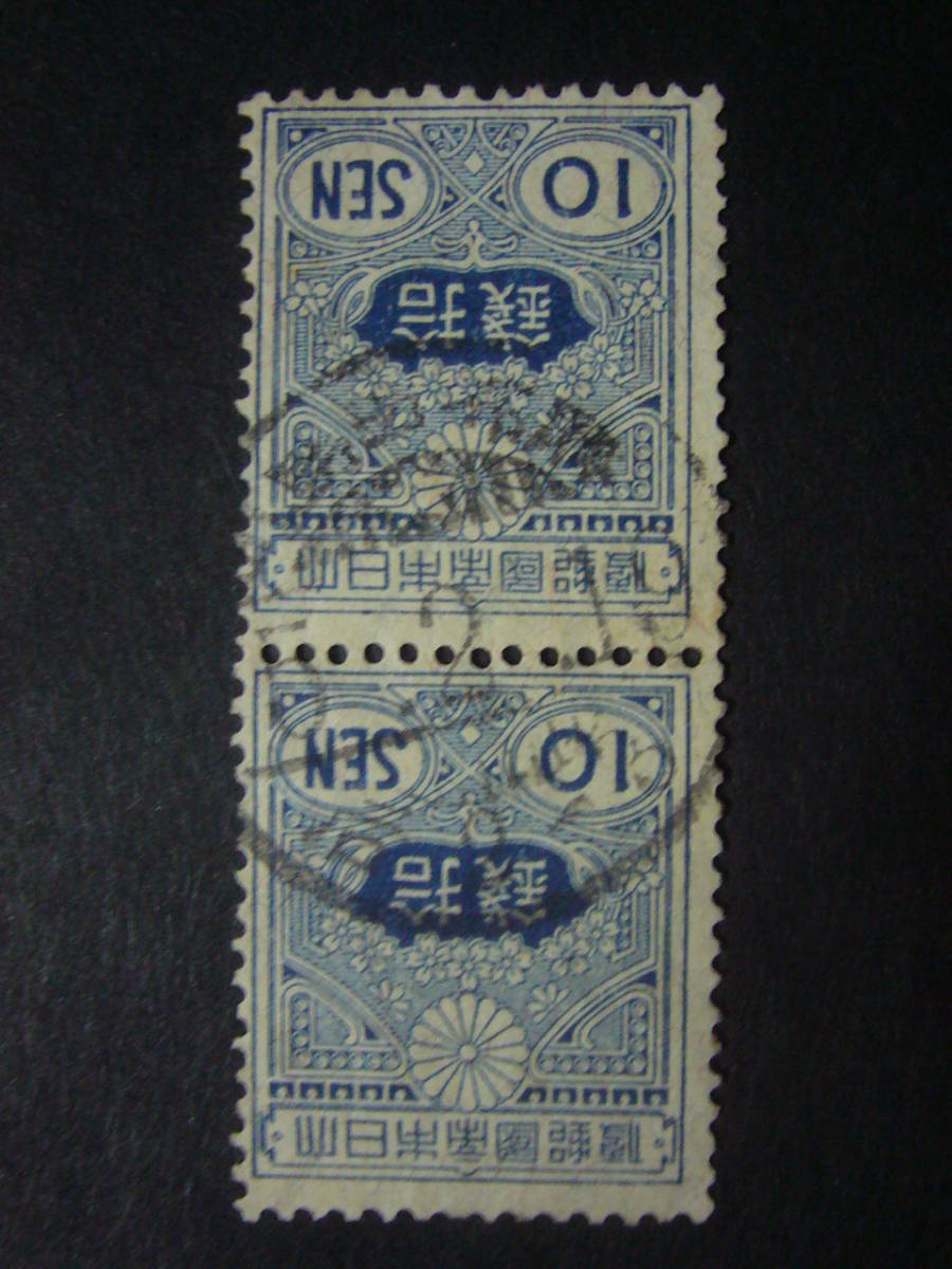 ★日本切手・使用済★B492 旧大正毛紙 10銭ペア 櫛型印 D欄☆入 時刻入 麻布?○○? 5年