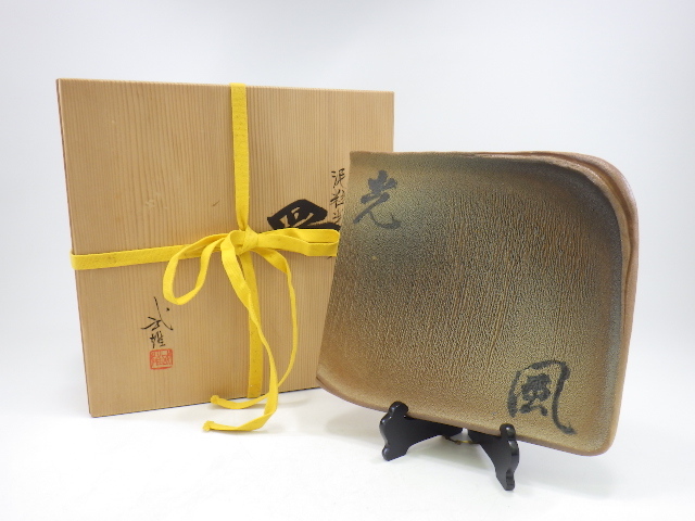 | ★☆h5J004Z 小川武雄造 泥粒彩 皿 飾皿 菓子皿 栞 共布 共箱☆★ | ||