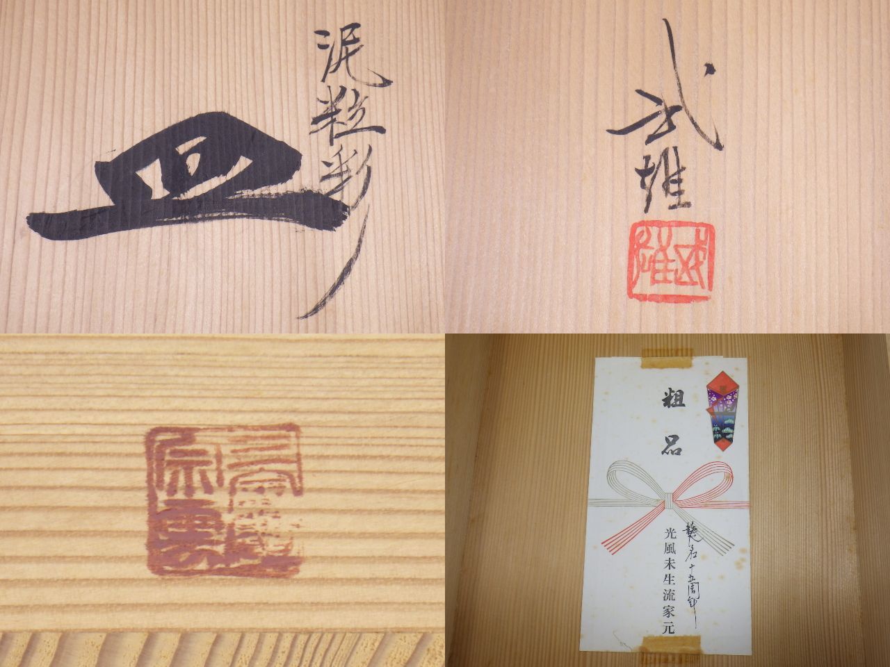 | ★商品説明★ | ※下記、【商品詳細】及び【落札後のご案内・注意事項・備考】欄をお読みいただき、ご理解頂いた上でご入札頂けますようお願い致します。 ![]() ![]() 《商品詳細 》 ◆小川武雄造 泥粒彩 皿 飾皿 菓子皿 栞 共布 共箱を出品致します。 ◆サイズ 約25cm×22.5cm 高さ最大:約4.5cm *素人採寸の為、多少の誤差はご容赦下さい。 ◆付属品:栞・共布・共箱 《商品状態 》 ◆中古品・長期保管品となります。 ◆底面に擦れや薄汚れがございます。 ◆共布にシミがございます。 ◆栞にシミやヤケがございます。 ◆共箱に擦れ・傷・汚れ・ヤケ、紐にシミがございます。 [ ※商品についての注意事項 ] ◆ いずれも画像を良くご確認頂き、ご自身の判断で納得されたうえで入札をお願い致します。 ◆ 画像につきましてはデジカメ撮影の為、実際の色合いと異なる事もありますのでご了承ください。 | |