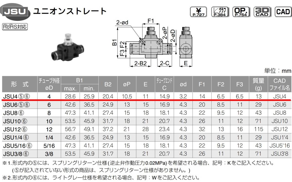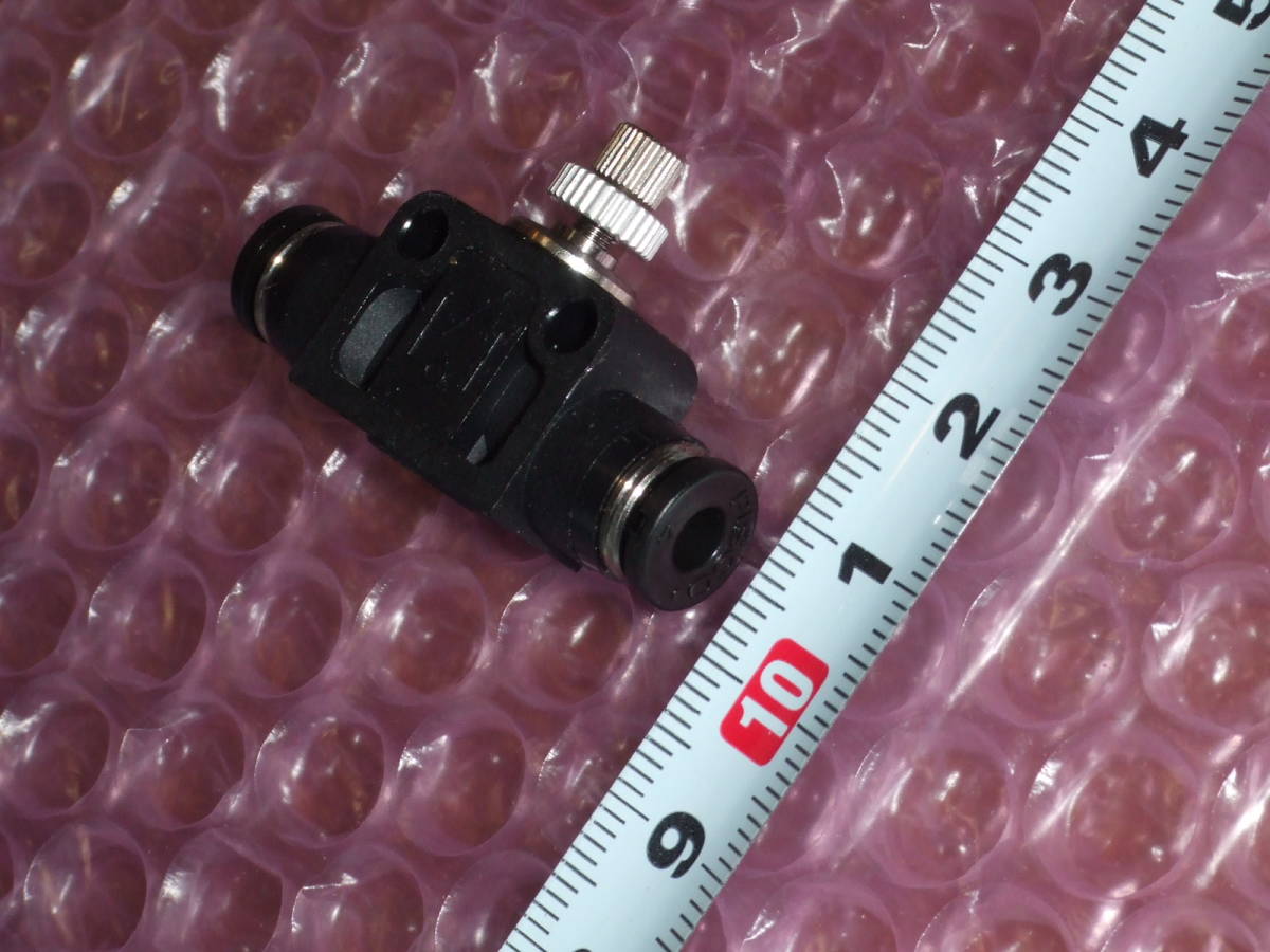 | PISCO スピードコントローラー JSU4 外径4φチューブ用 ワンタッチ継手 ユニオンストレート です。 ★試作で取り付けて外した物なので、新品同様に美品です。 到着後1ヶ月以内の不具合には返金など、きちんと対応します。 送料全国一律140円(定形外郵便) ※インボイス対応領収書発行可能です。 ※出品物は、スロットルバルブではなく、スピードコントローラーです。 スピードコントローラー(スピコン)と、スロットルバルブは外見が似ていて、違いは下記です。 ・スピードコントローラー:絞り弁だけでなく、逆止弁も内蔵しており、順方向で絞り弁による任意の制御流、逆方向では自由流になります。 ・スロットルバルブ:絞り弁だけが内蔵されていて、順方向、逆方向とも同じ流量の制御流となります。 ★複数必要な方は、ヤフオク規約順守のため、落札後すぐに再出品しますので、必要数落札下さい(在庫は10ケです) ★ワンタッチ継手接続なので、接続後にチューブが360度回転できます。 ★駆動機器の速度制御弁です。 ★メーターイン・メーターアウトとして使用できます。 【主な仕様】 使用温度範囲:0~60℃(凍結なきこと) 使用圧力:0.1~0.9MPa 逆止弁作動圧力:0.05MPa 適合チューブ外径:6mm 使用流体:空気 質量:13g |