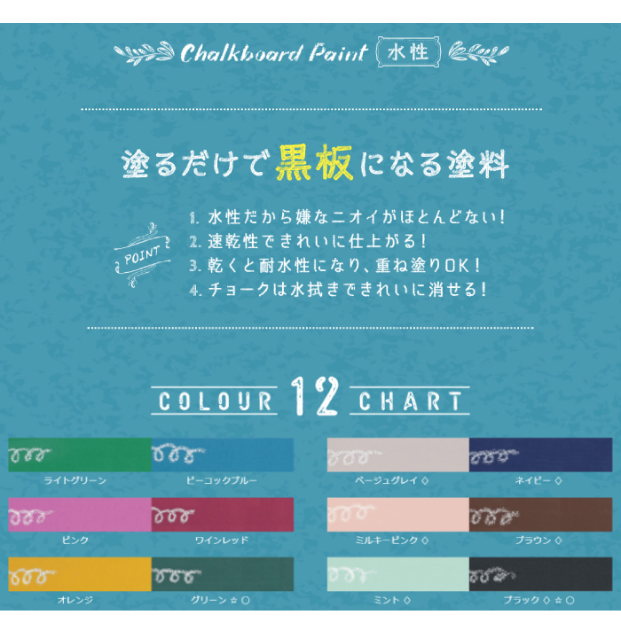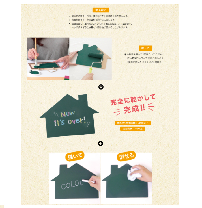 水性なのでイヤな臭いもなく、速乾性があり、きれいに仕上がります。