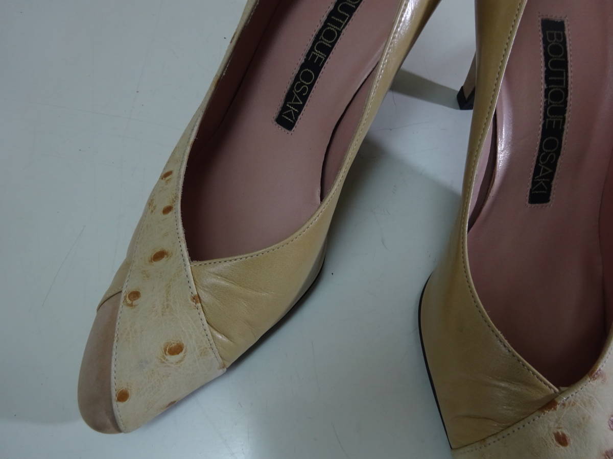 BOUTIQUE OSAKI ブティックオーサキ パンプス 商品説明 ●サイズ23cm ●ヒールの高さ約7cm ●ワイズ幅約7.5cm ●状態 爪先スエード部分にやや汚れが御座いますがその他は比較的お綺麗なお品。 ●お色 ベージュ系 革/スエードのコンビモデル ●お手入れ抗菌済み品 ●箱なし コメントが御座いますとお気軽にお問い合わせ下さいね、 宜しくお願い致します