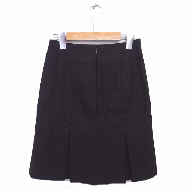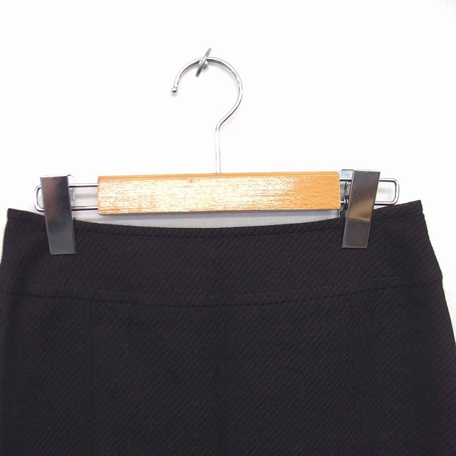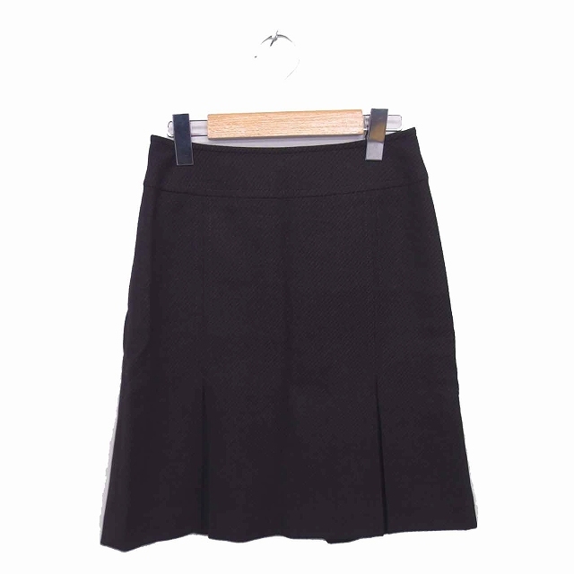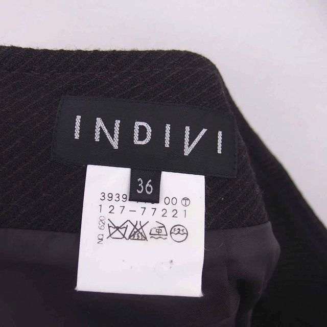 インディヴィ INDIVI 台形 スカート 膝下丈 斜めストライプ ウール 厚手 36 ブラック ブラウン 黒 茶 /TT24 レディース