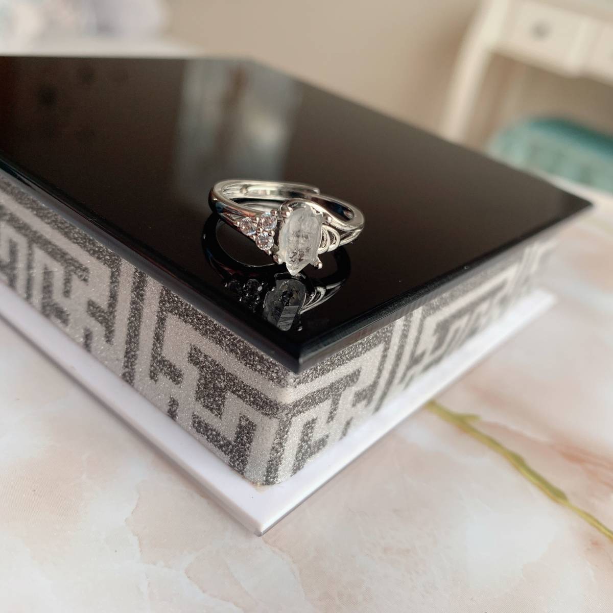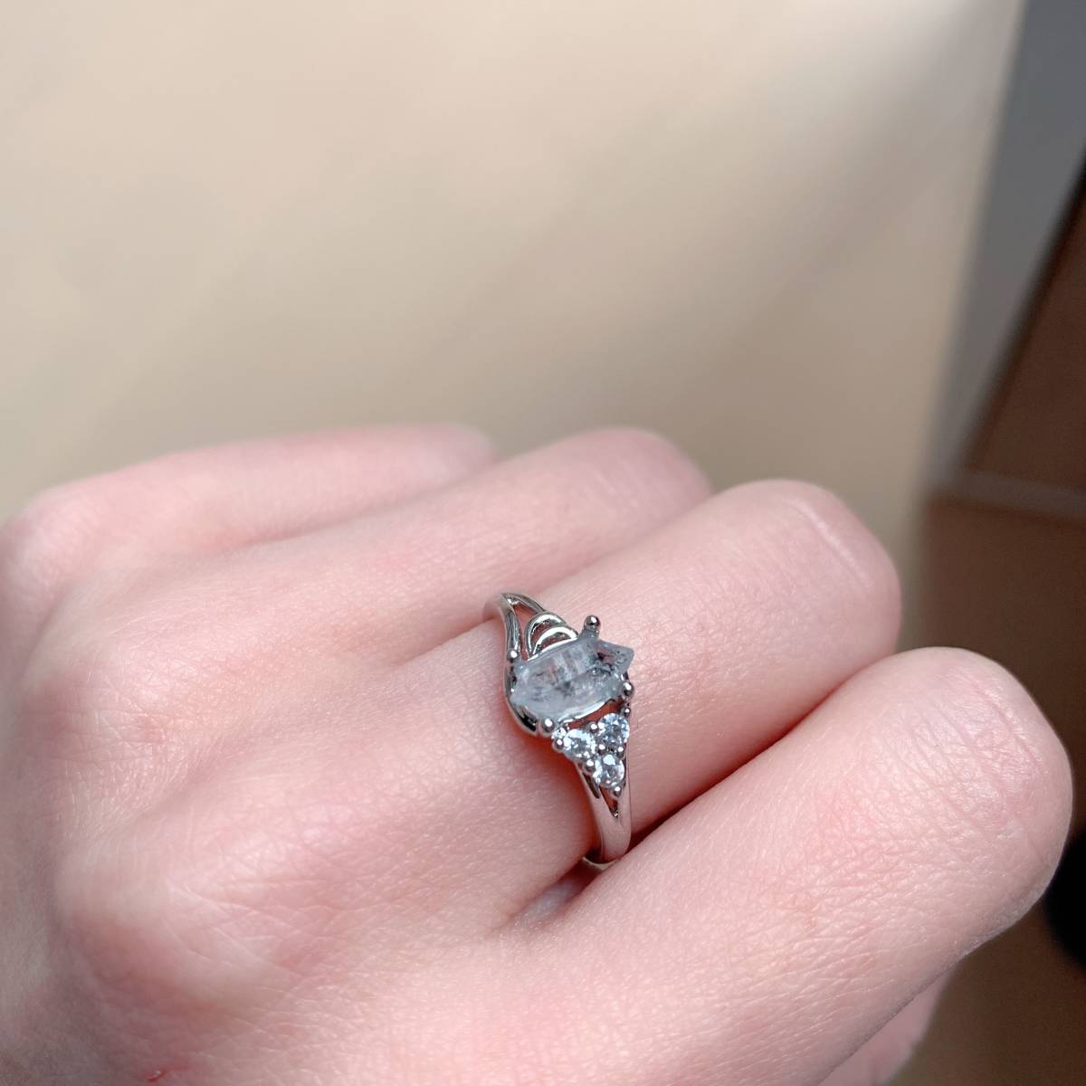☆ハーキマーダイヤモンド☆フリーサイズ☆リング☆指輪☆パワーストーン☆天然石☆ラッピング袋付き☆プレゼントにも 19RG42506