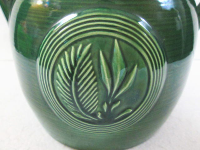 【ヴィンテージ Red Wing Ernest Sohn E.S. U.S.A.Butter Mold グリーン 水差し 全高 約30㎝】レッドウィング/シダ 植物模様/陶磁器