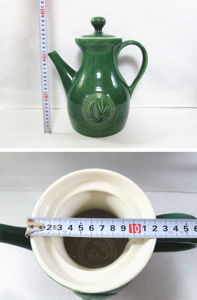 (商品名) 【ヴィンテージ Red Wing Ernest Sohn E.S. U.S.A.Butter Mold グリーン 水差し 全高 約30㎝】レッドウィング/シダ 植物模様/陶磁器