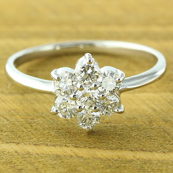 商品コードer938pt 発送は2週間ほどです甘さがありながら、どこか凛とした表情のあるリングは、あなたを素敵な女性へと導きます。道端に咲く可憐な花をモチーフにしたパヴェリング。ダイヤモンドと花、この2つの組み合わせは、さまざまなシーンで活躍し、多くの女性たちに愛され続けています。その中でも、こちらは7個のダイヤモンドを施した贅沢さと、リングの華奢なフォルムがフェミニンな装いを演出、女性らしさをさらにランクアップさせるジュエリーではないでしょうか。空を見上げれば星が輝き、足元を見れば花が咲き、あなたの指先を見れば、輝きと可愛らしい花が咲き誇る、ときめきのリングを貴女へ。■商品詳細材質 プラチナ900(品質を保証するpt900の刻印)宝石名 天然ダイヤモンド 0.50ct大きさ 最大幅 最大巾タテ 約8.0mm×最大厚 約4.0mmウデ幅 約1.0mmリングサイズ サイズ 5号~16号備考 材質・石目(ダイヤ)の刻印入り[bell-294]お誕生日 プレゼント 結婚記念日 クリスマス プレゼント ホワイトデー 結婚式 卒業式 入学式 新生活 母の日 成人のお祝い 女性への贈り物 彼女 恋人へのプロポーズにも喜ばれるジュエリーをとりそろえております