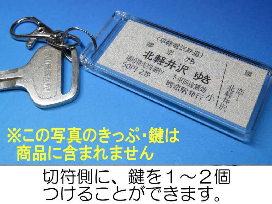 ・本物の硬券(B型券)を、透明キーホルダーにしたものです。