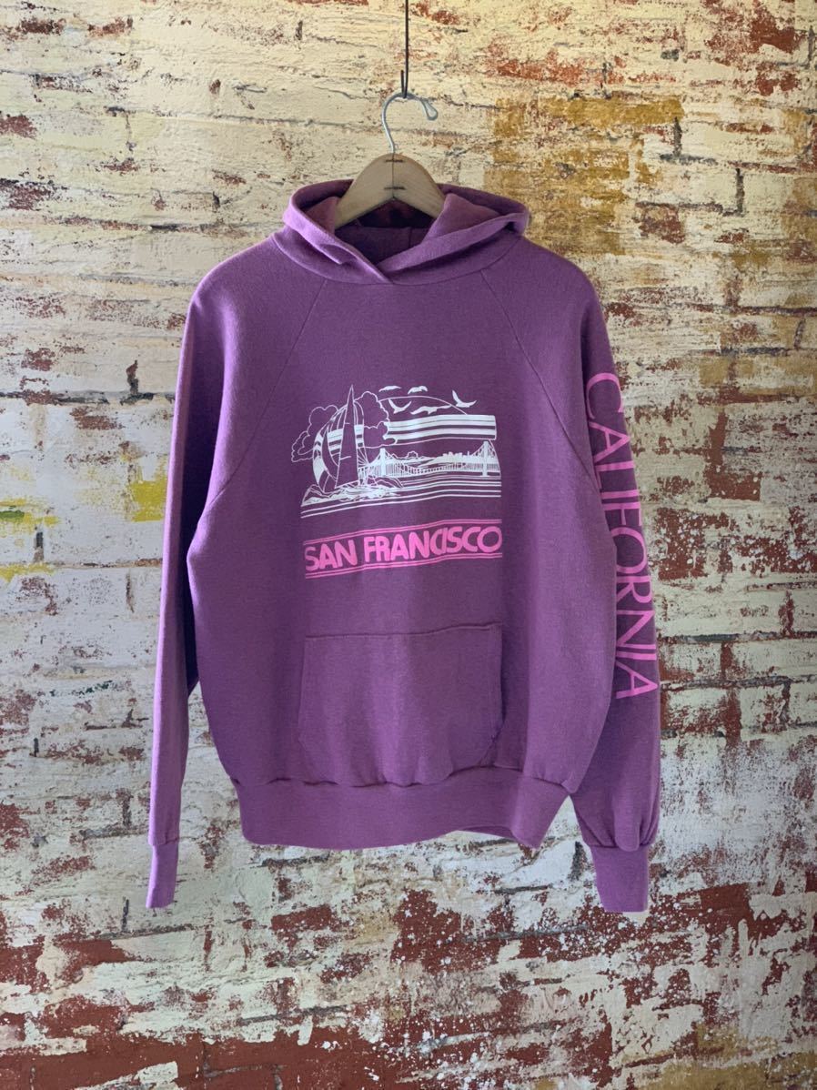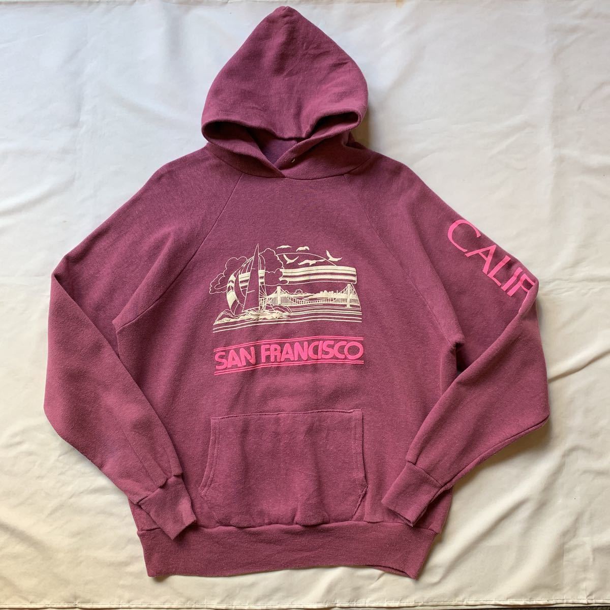 ライトパープルカラーのSAN FRANCISCO スウェットパーカーになります。アメリカ製で左袖にはCALIFORNIAのプリントが入ります。この様なデザインのスウェットパーカーは数が少なく、お探しの方も多いと思います。特にサイズ表記の大きな物はなかなか見つかりません。お探しだった方は是非ご検討ください。