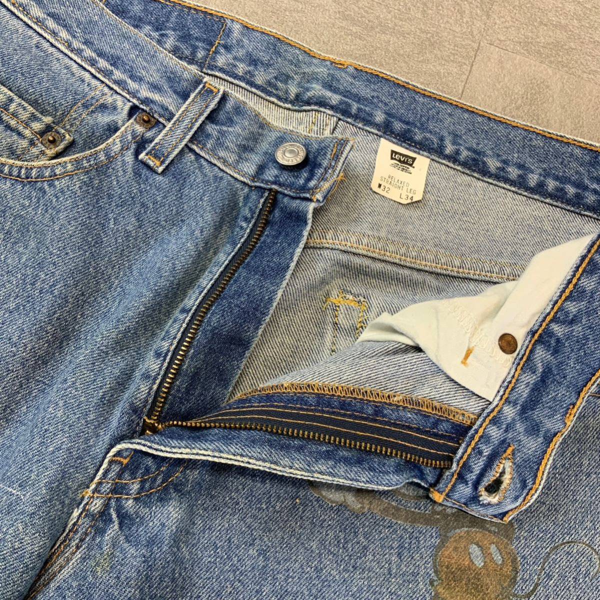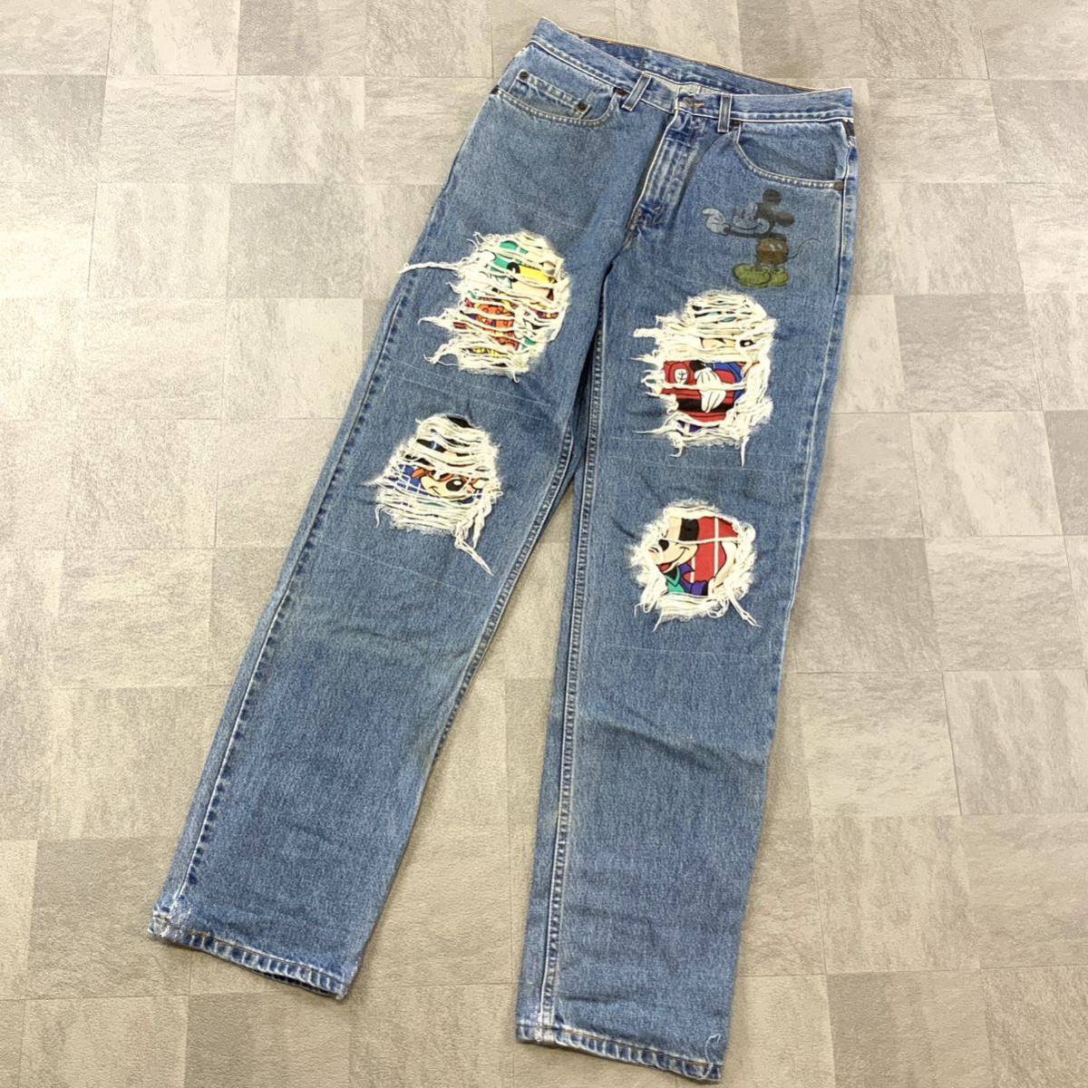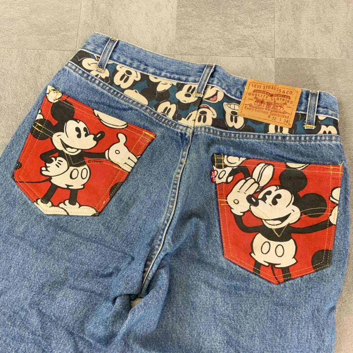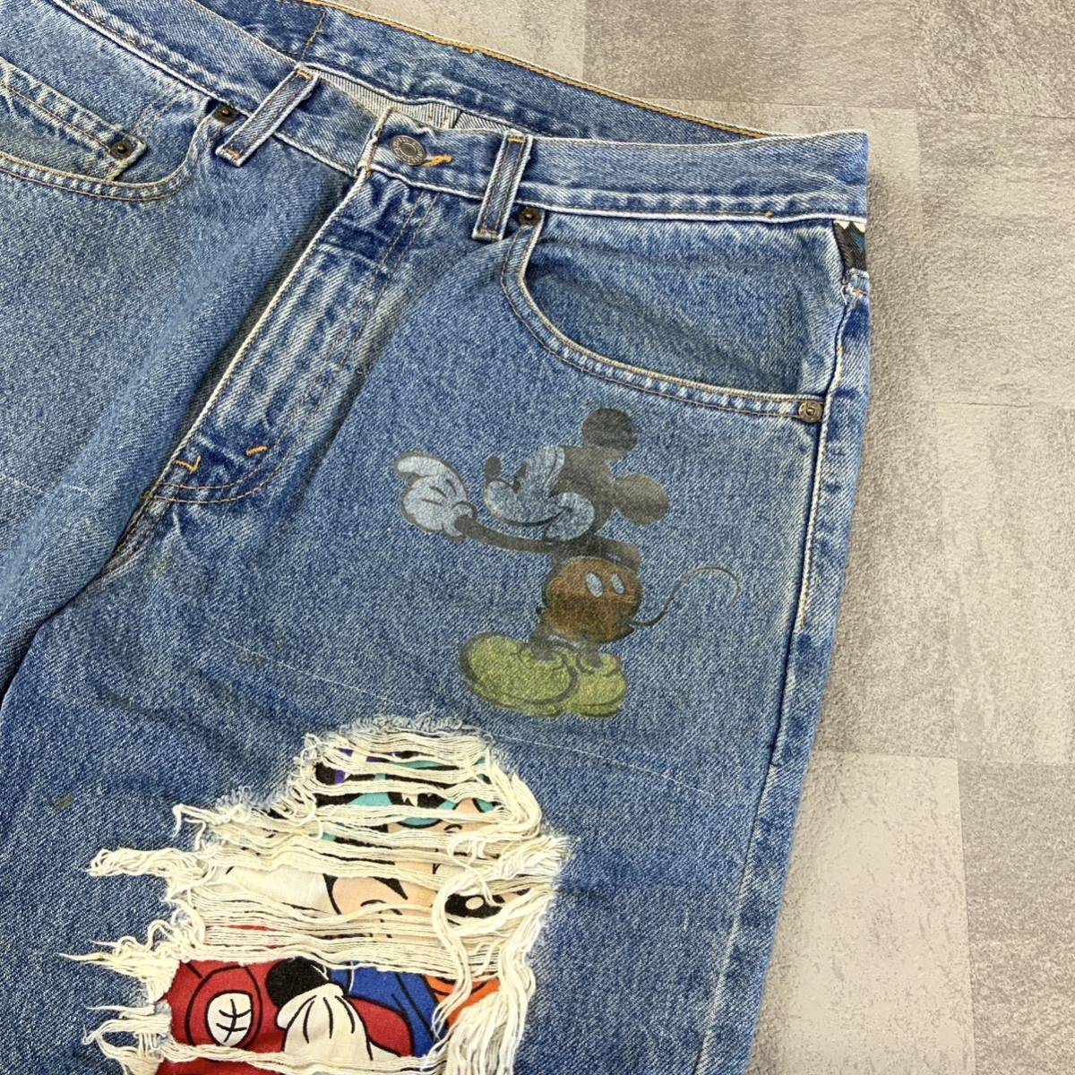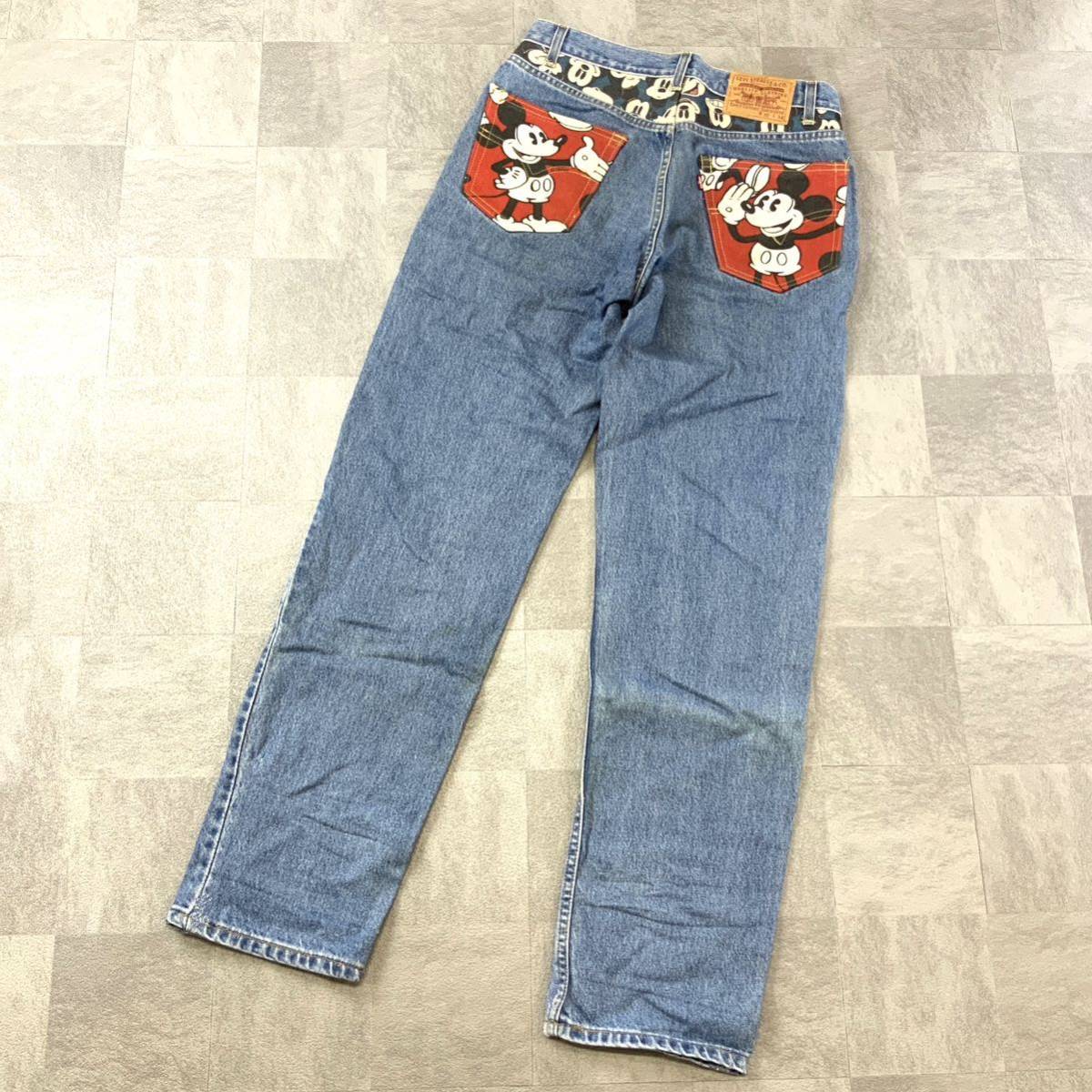 良品 希少 Levi's 901 Disneyミッキー リーバイス デニムパンツ Gパン メンズ ライトブルー W34 L36 02年製