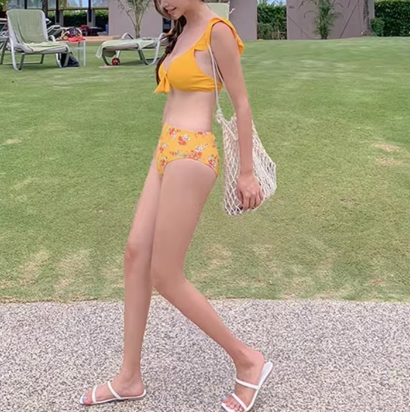 【イチオシ厳選商品】 レディース 水着 セパレート フレアショルダー ビキニ 花柄プリント d75