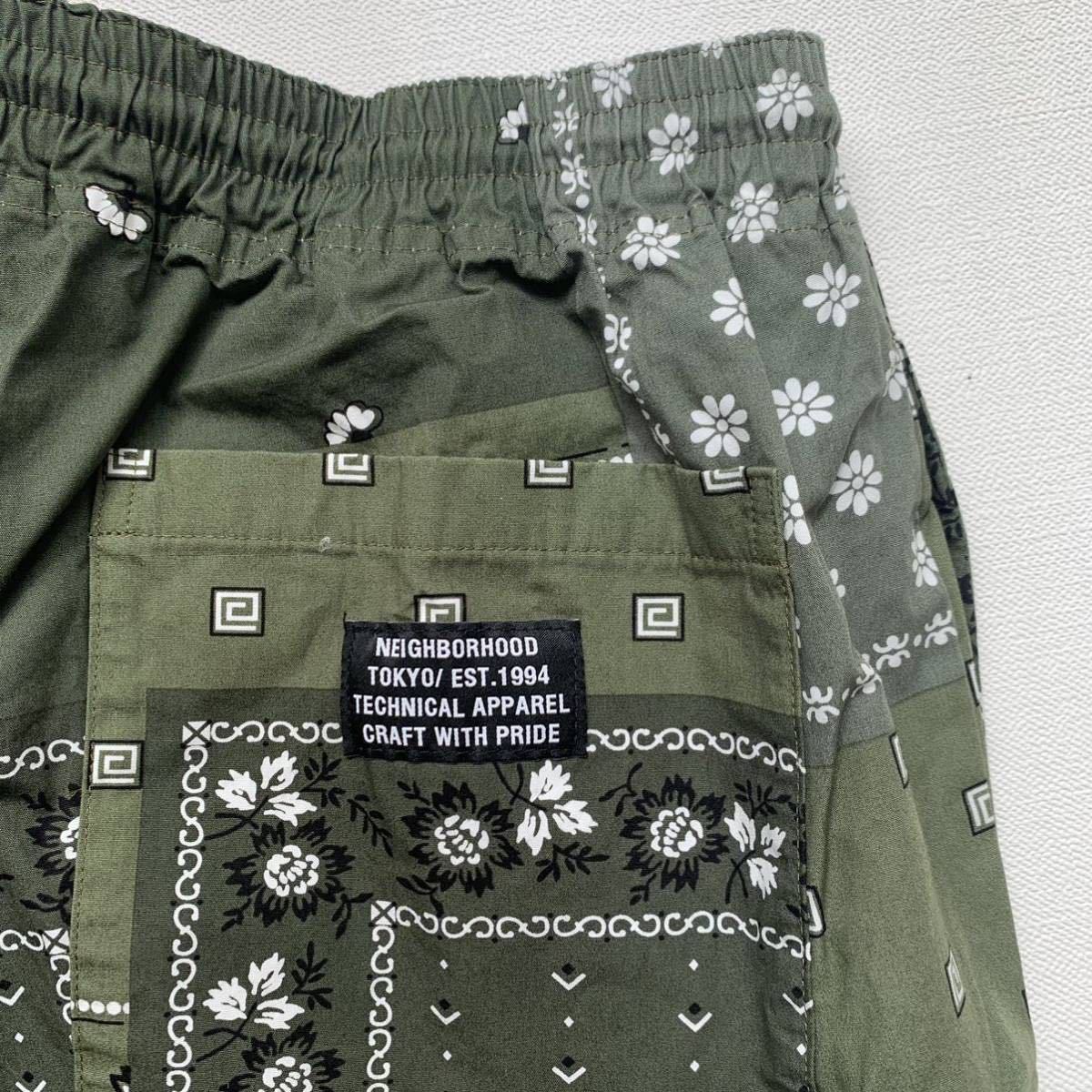 NEIGHBORHOODの2022SSコレクションから、コットンウェザークロスにバンダナ柄をプリントした生地のイージーショーツ。