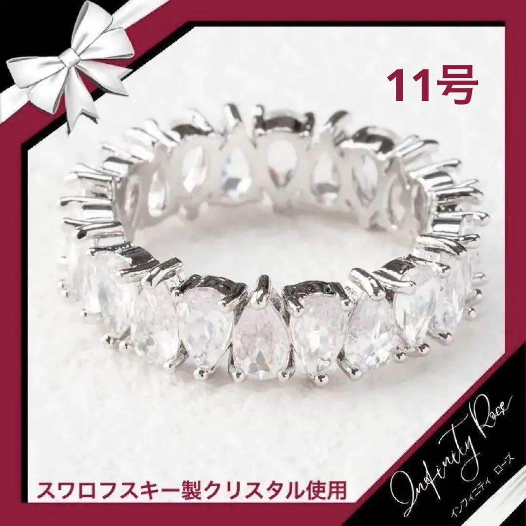 (R038S)11号 シルバーシズク×逆シズクウルウルリング 高価爪留め仕様指輪 スワロフスキー製クリスタル使用