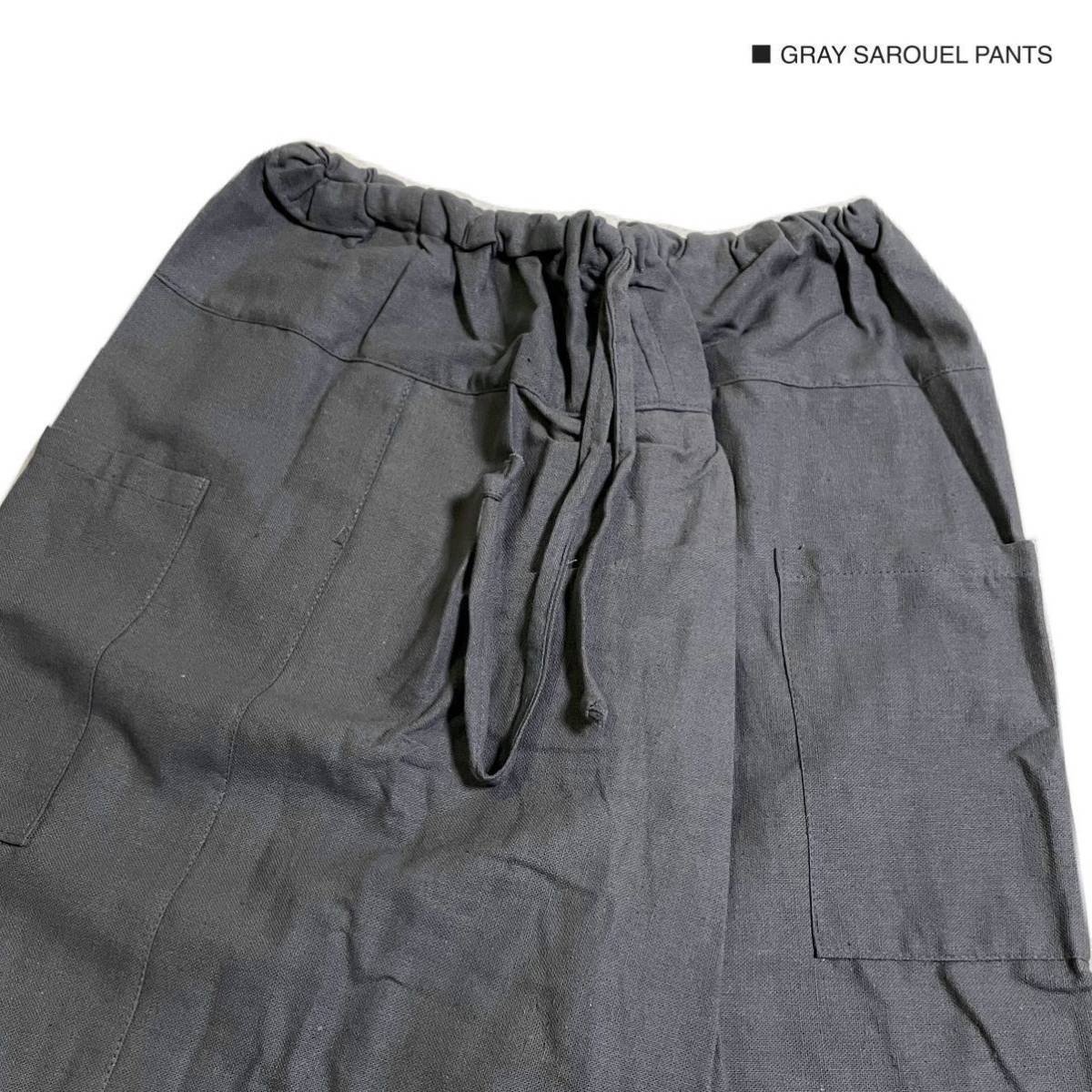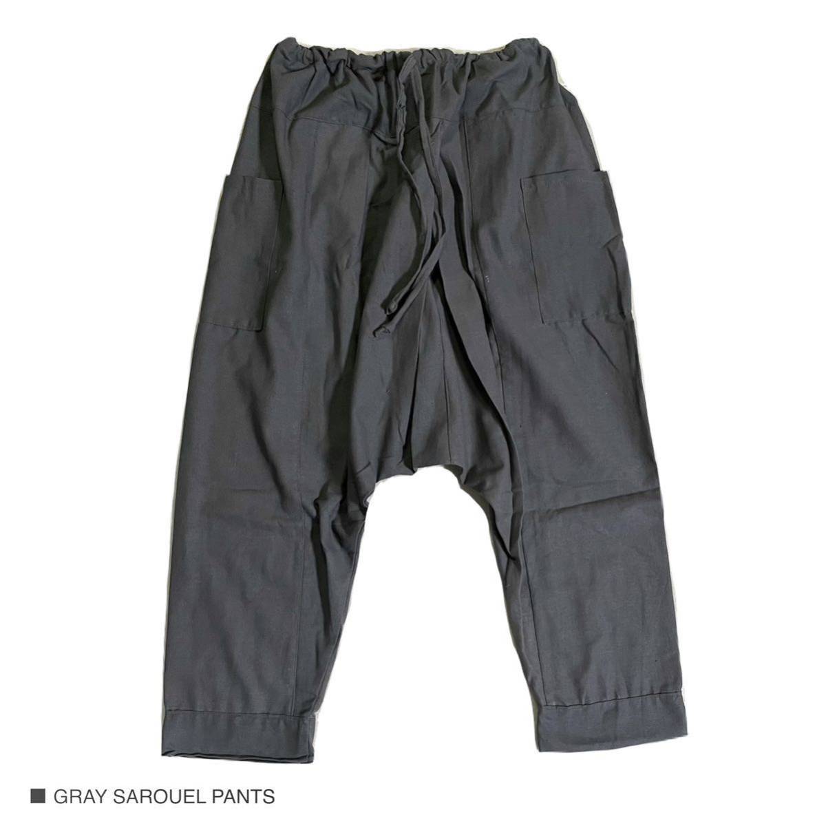 新品 グレー サルエルパンツ ワイドパンツ ガウチョパンツ カーゴパンツ クロップドパンツ フリーサイズ