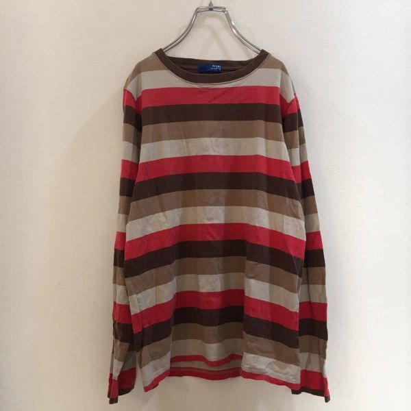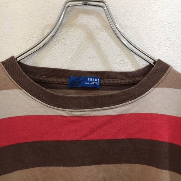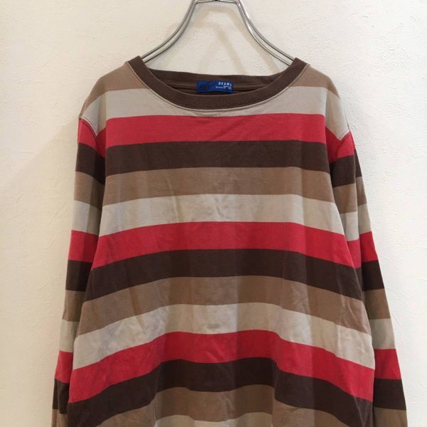 商品: BEAMS/ビームス 長袖ボーダーTシャツ ブラウン茶 ベージュ レッド 赤 レディース