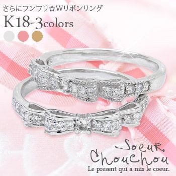 商品コード j14071701wg 発送は2週間ほどです当店人気のリボンリングがさらにフンワリ、ダブルリボンになって登場リボンモチーフには、カタチの通り「結ぶ」ことを表し、縁を呼び込み人と人との結びつきを深め、特に女性の恋愛運や結婚運に効果があるといわれていますセンターにもリボンテープ部分(アーム)にもダイヤモンドを敷き詰めてキラキラ感たっぷり華奢さが優しさと可愛らしさを引き立て、またデイリーにお使いいただけるサイズ感が魅力■商品詳細材質 k18ゴールド (ホワイト・ピンク・イエローよりお選びいただけます)宝石名 天然ダイヤモンド トータル0.20ct大きさ 最大幅 約3.5mm 最大厚 約3.3mm備考 材質・石目(ダイヤ)の刻印入りプレーンタイプ・ミル打ちタイプ(+1,000円)が選択肢にてお選びいただけますsa193/194(mill)お誕生日 結婚記念日 贈り物 クリスマス プレゼント ホワイトデー 結婚式 卒業式 入学式 新生活 母の日 成人のお祝い 彼女 恋人 女性への贈り物 ギフト対応 送料無料普段使い 日常使い デイリー カジュアル 冠婚葬祭 フォーマル 自分へのご褒美 浴衣に似合う ボーナスセール 安い