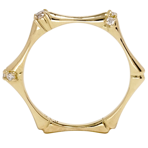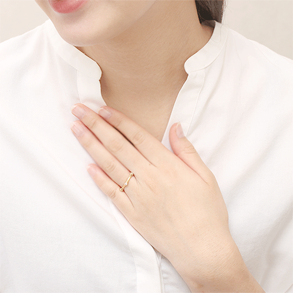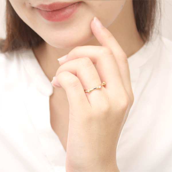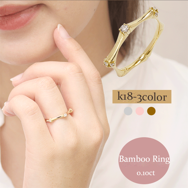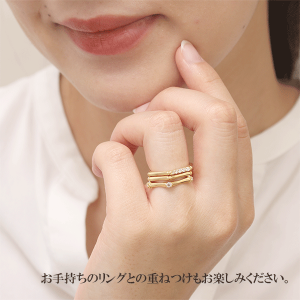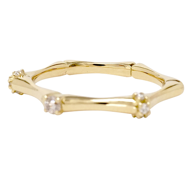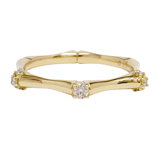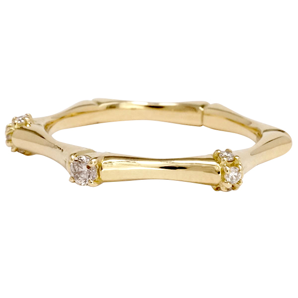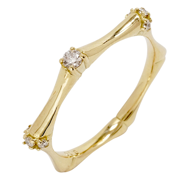 竹を繋ぎ合わせたような遊び心のあるデザインリング。指先に添えるだけで、ちょっとした和のおしゃれを楽しめます。無垢(裏抜きなし)でとても着け心地の良い指輪です。◆商品詳細材質 K18ゴールド(ホワイト・ピンク・イエローよりお選びいただけます)宝石名 天然ダイヤモンド トータル0.10ct (1/20*1 1/120*5)大きさ 最大巾 約2mm×最大 厚み 約1mm備考 材質の刻印入り/裏抜きナシbell-424(#11 no.hasa)
