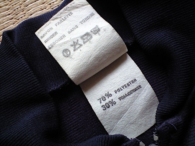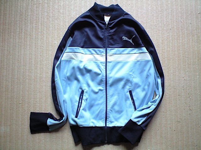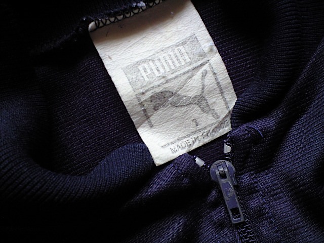 鈍く光沢のがあってコシのある素材。アディダスのATPタイプのように襟のないタイプで、フランス製らしく「P」ジップ。首元のタグはプーマの白いサイズタグです