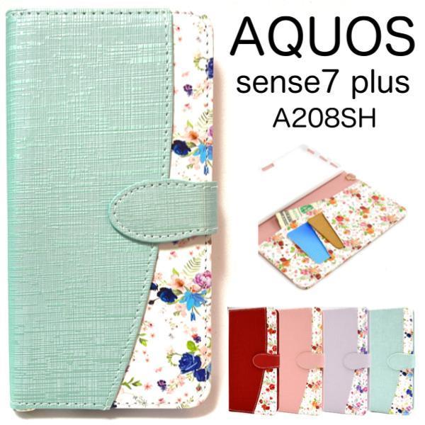 スマホケース AQUOS sense7 plus A208SH (Softbank) 花柄 手帳型ケース A208SH (Softbank) AQUOS
