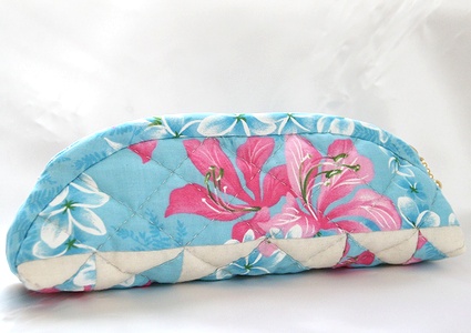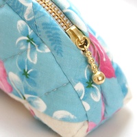 ●櫻●ブルー】パッチワークポーチ♪花柄・横長♪アクセサリーケース,小物入れ,小銭入れ,お薬入れ,キーケース,PC周辺コード機器収納